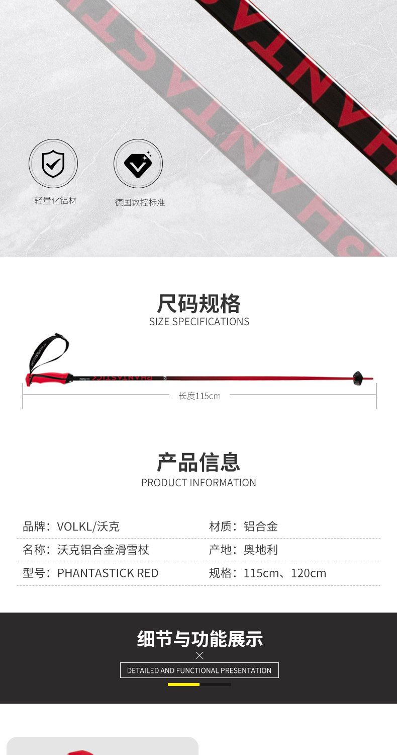 2020 New Vllkl Walker Ski Stick Aluminum сплавная лыжная палка Phantastick Red