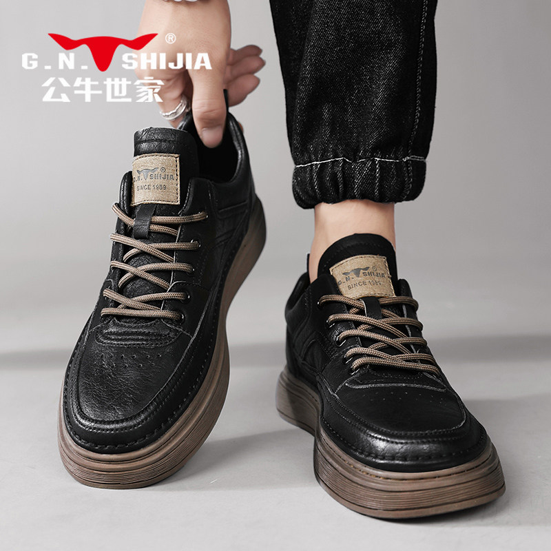 Обувь в английском стиле, черные кроссовки для отдыха для кожаной обуви, из натуральной кожи