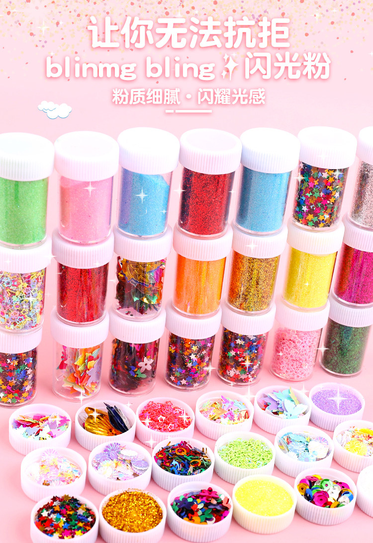 Мигающие детские блестки для ногтей с аксессуарами, DIY