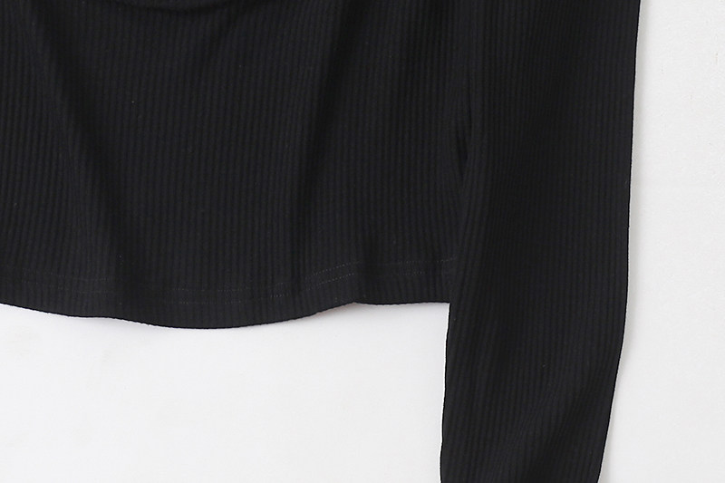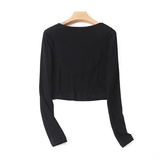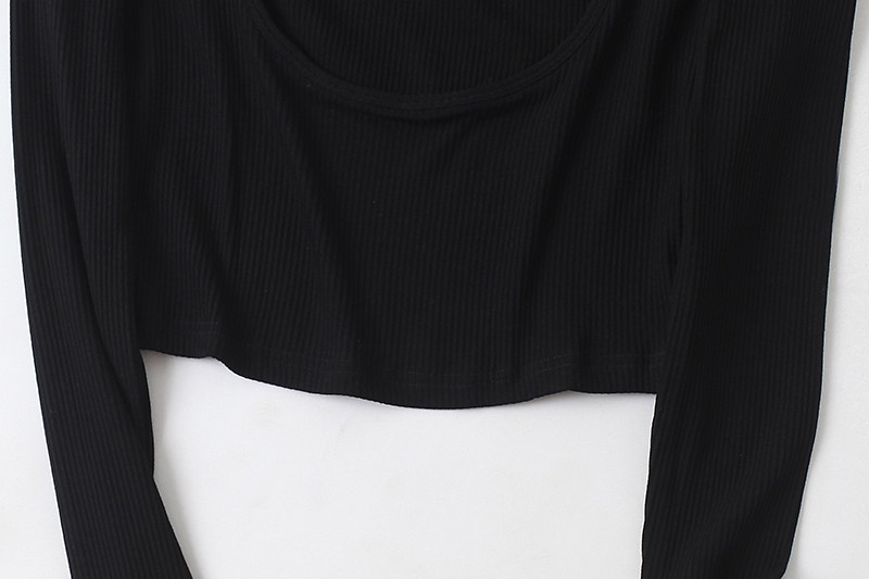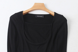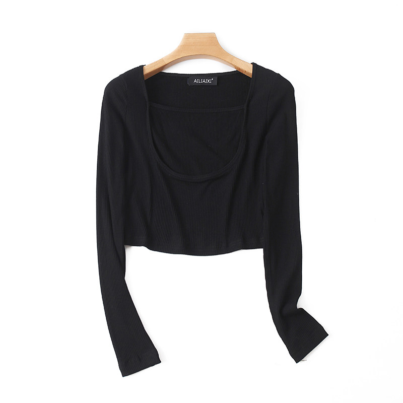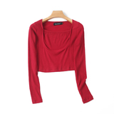 Трикотажный эластичный короткий осенний базовый лонгслив, квадратный вырез, облегающий крой
