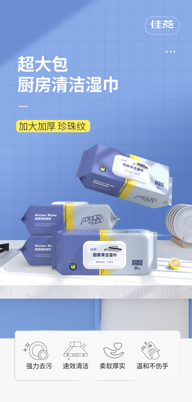 Обезжиривающая большая кухонная утварь, влажные салфетки, увеличенная толщина
