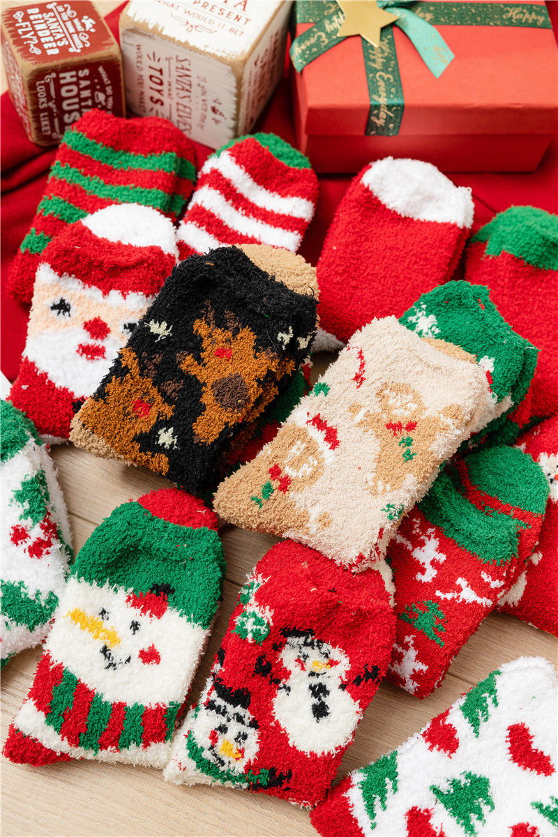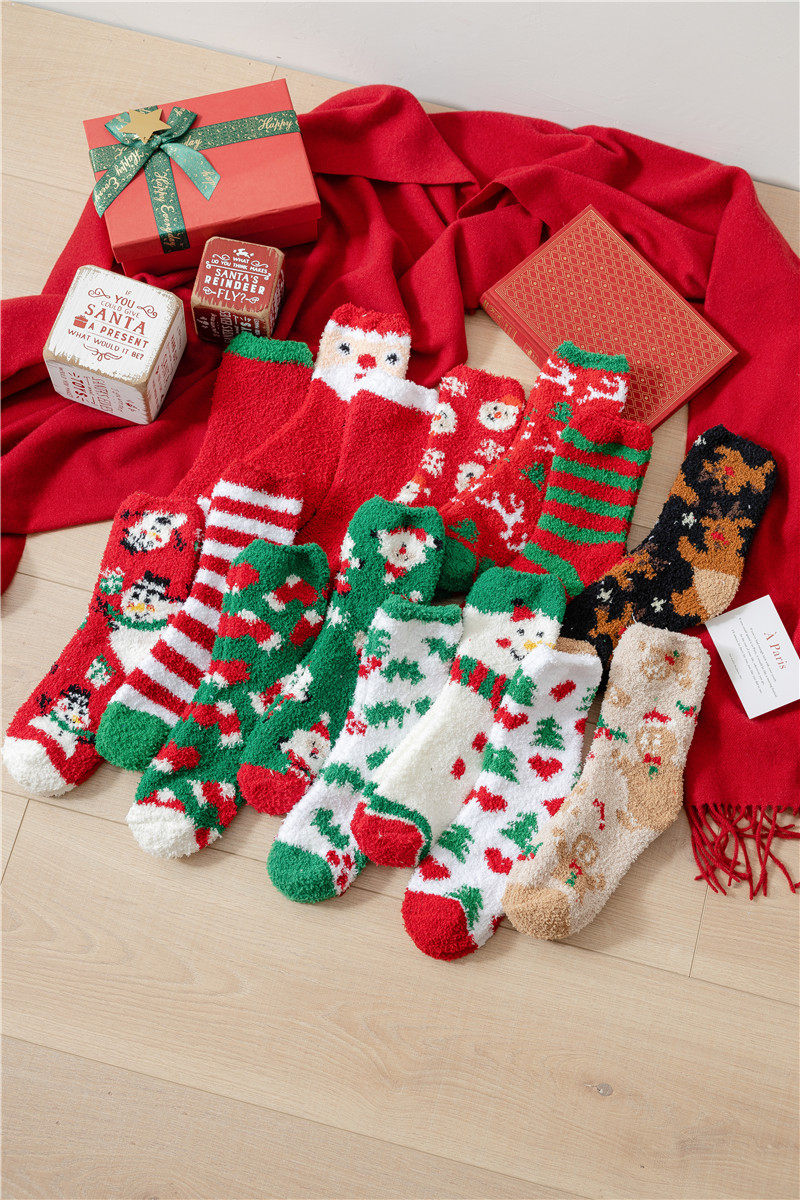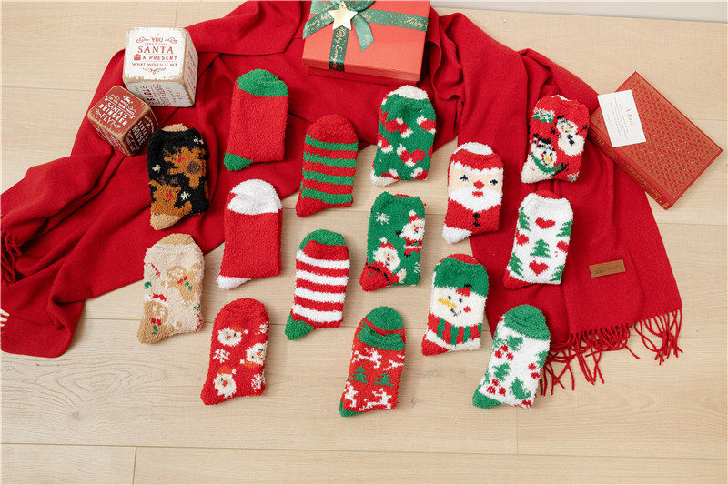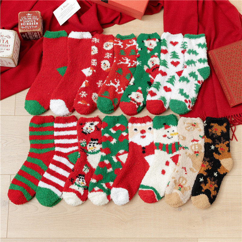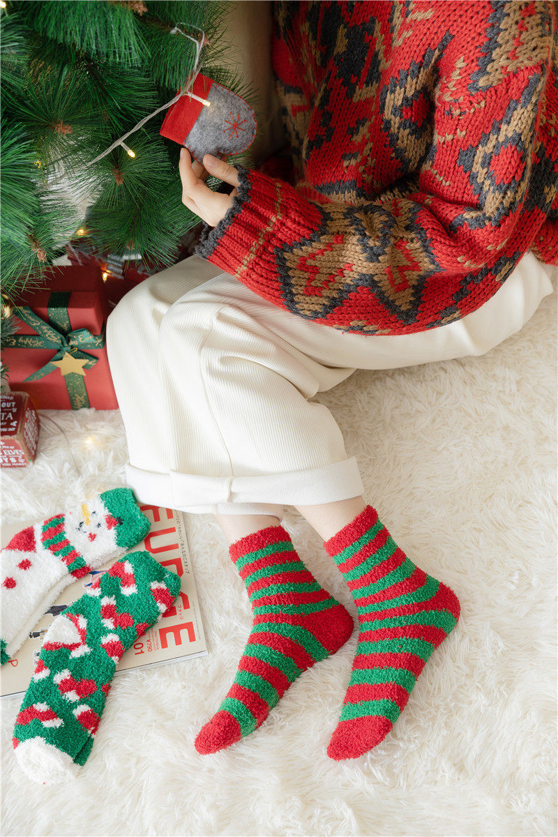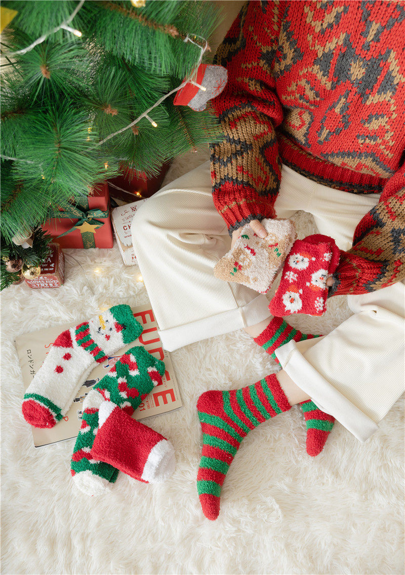 Рождественские коралловые бархатные носки, демисезонные утепленные удерживающие тепло гольфы, подарок на день рождения, средней длины