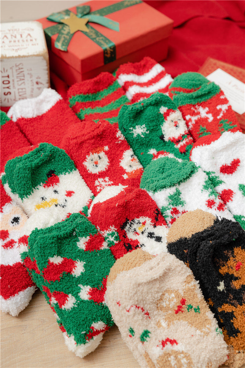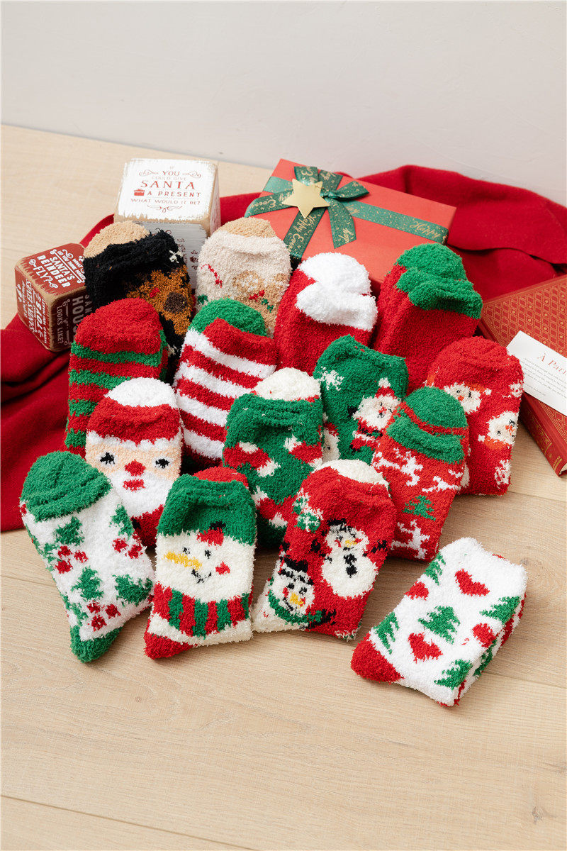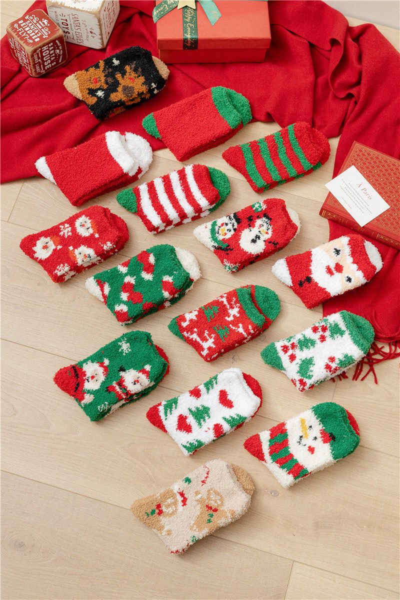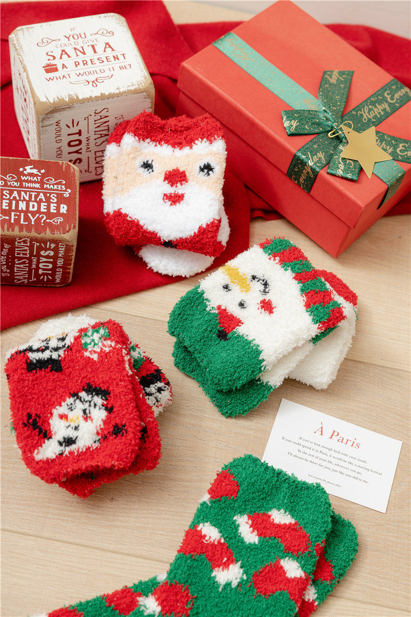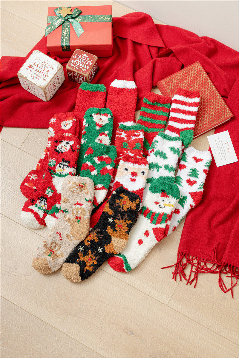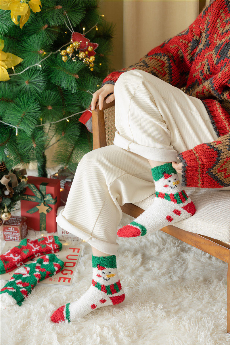 Рождественские коралловые бархатные носки, демисезонные утепленные удерживающие тепло гольфы, подарок на день рождения, средней длины
