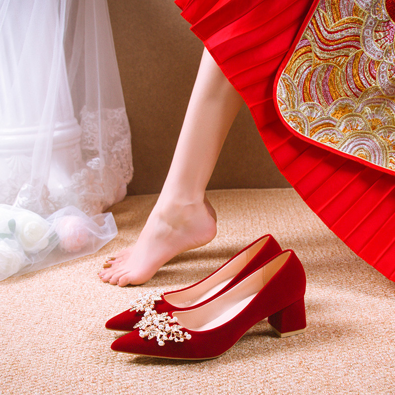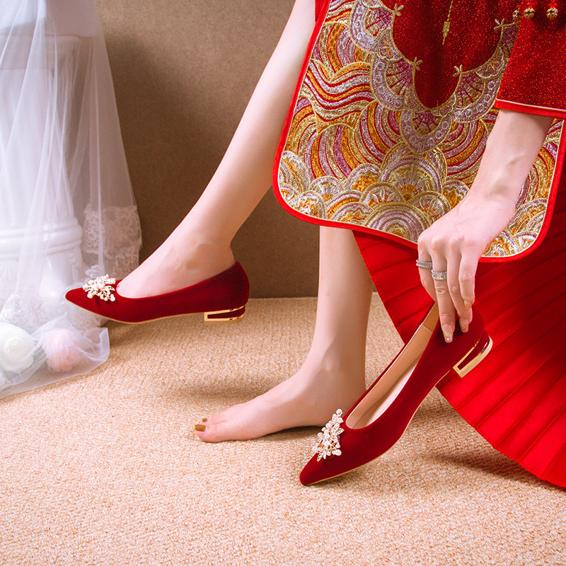 Свадебные туфли, обувь, традиционный свадебный наряд Сюхэ, свадебное платье для беременных на высоком каблуке, коллекция 2023, китайский стиль