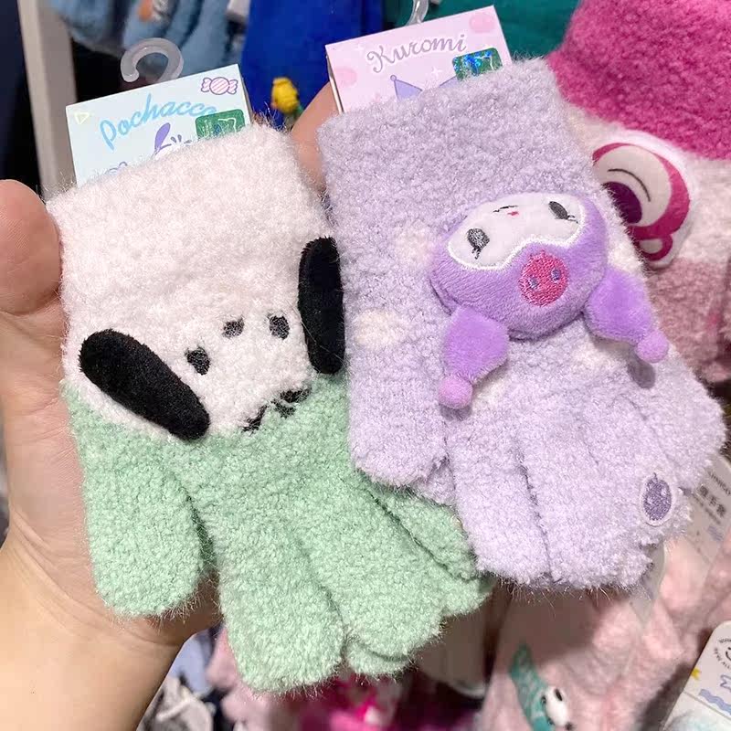 Минисой Санрио Югуи Пача собачья волоса карнаваль DIY для взрослых перчаток Flip Fleece Glos