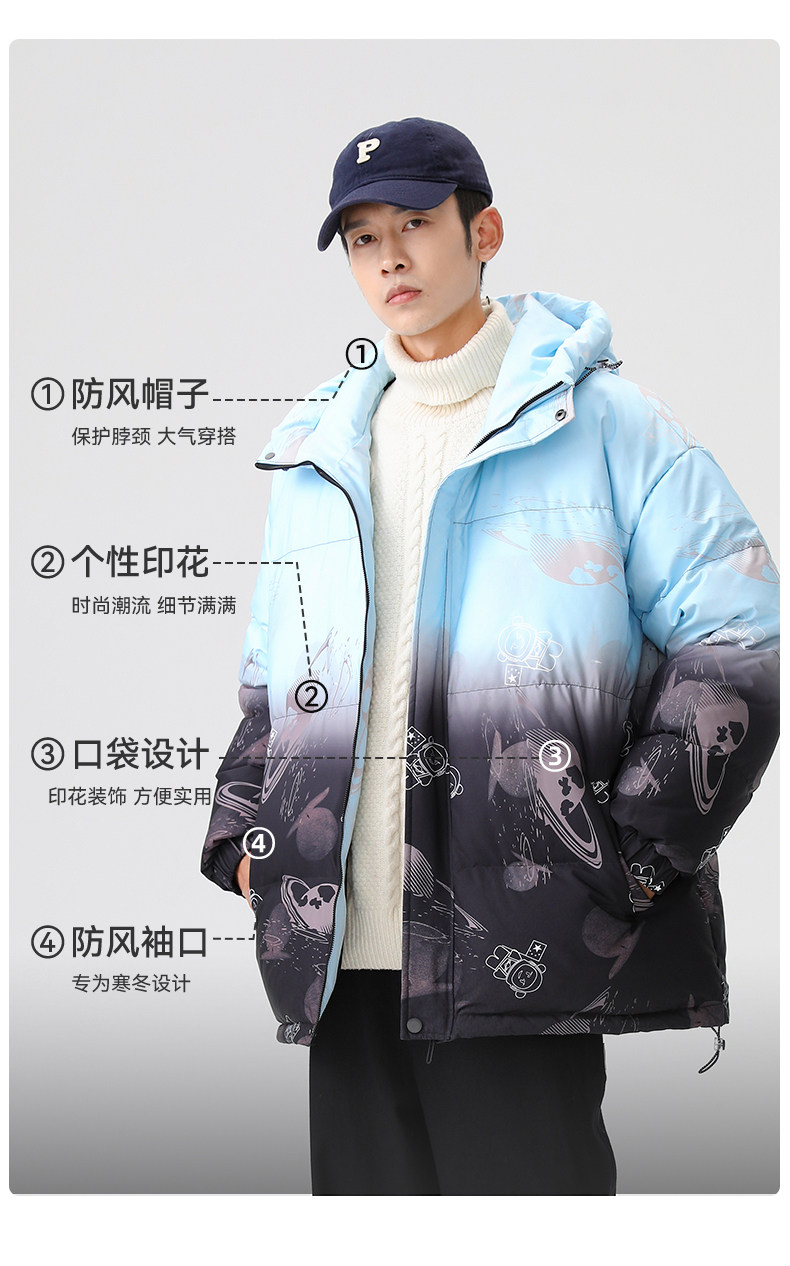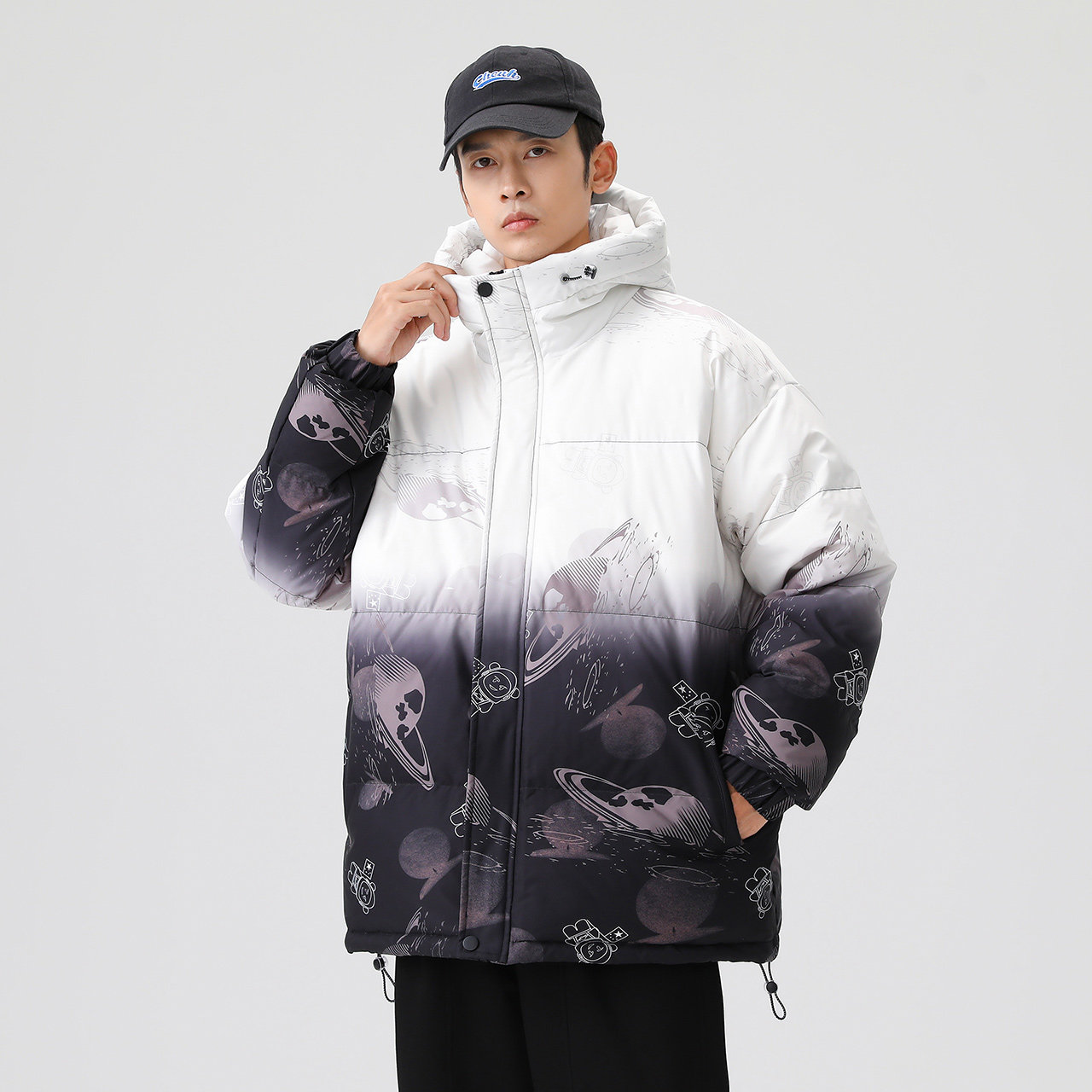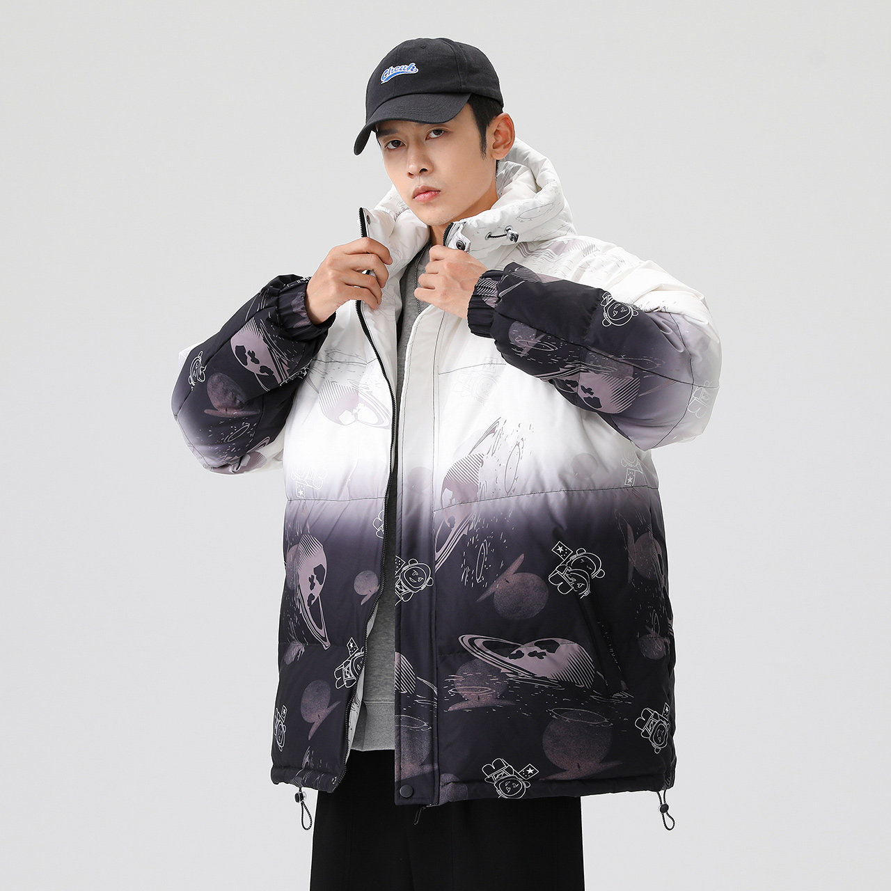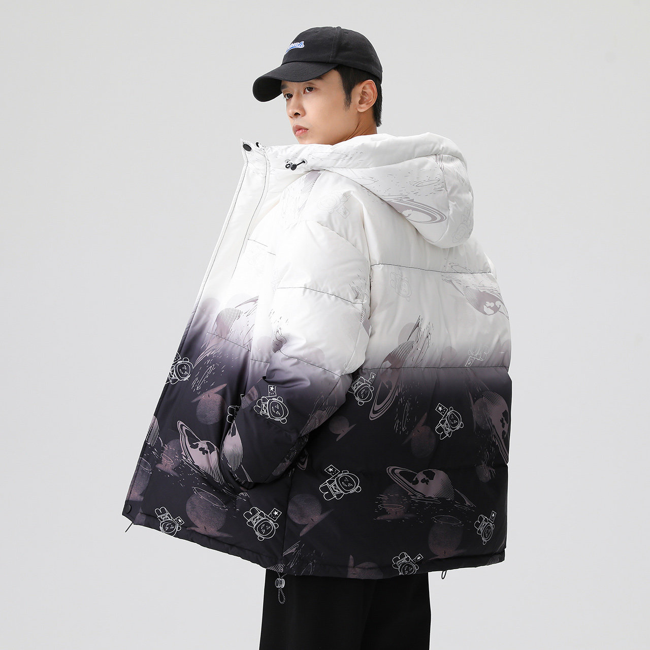 Демисезонный комфортный пуховик, градиент, свободный крой