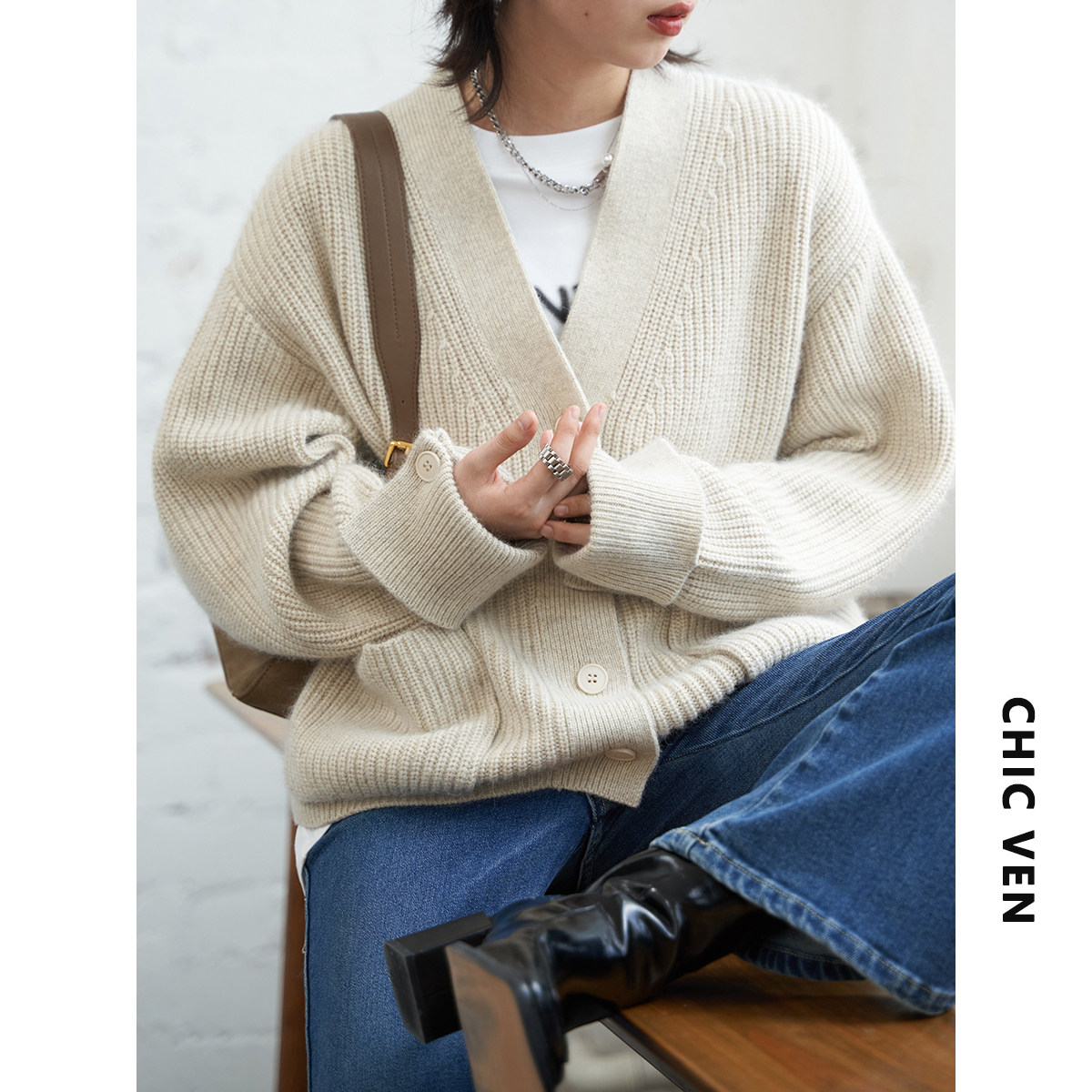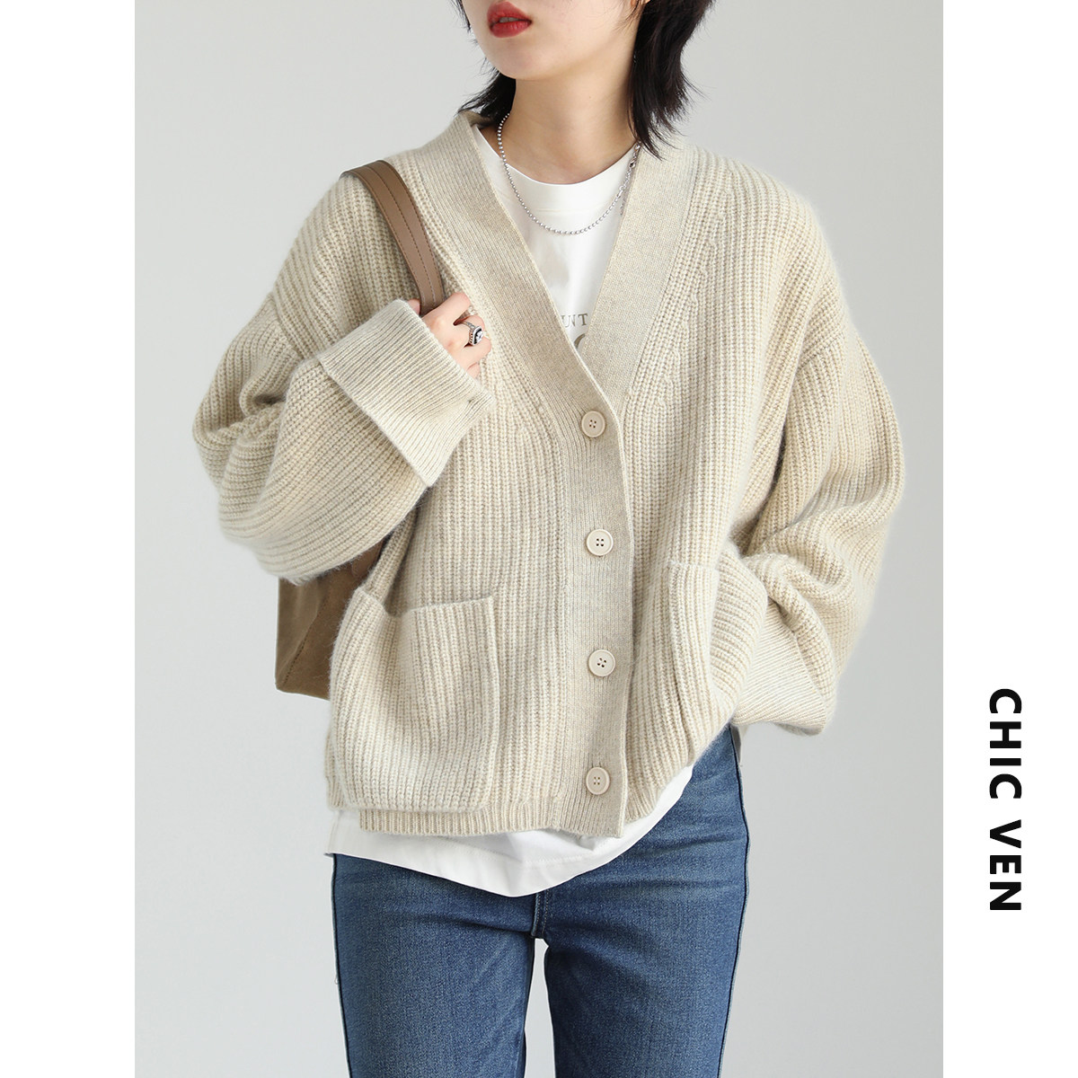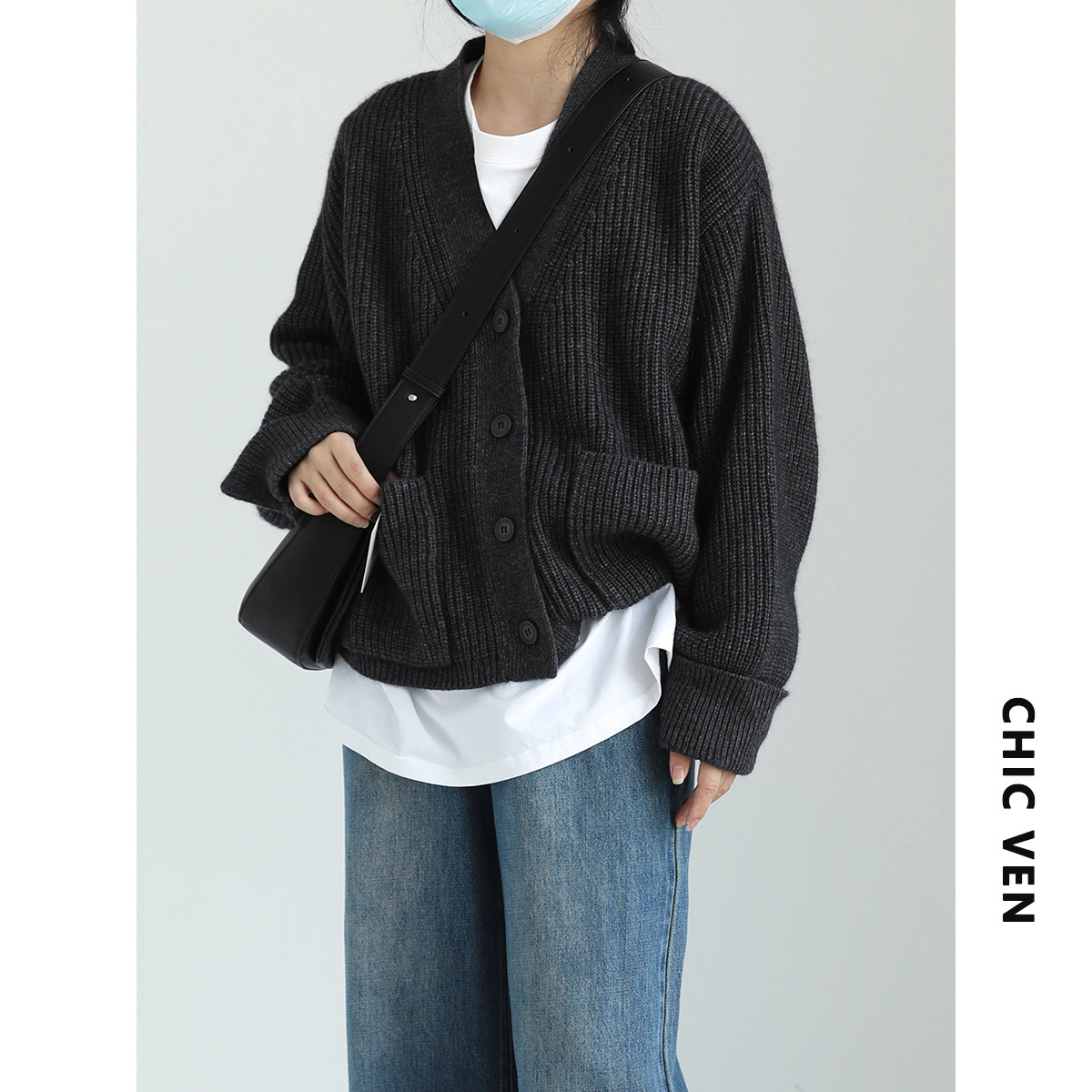 Эмоциональный кардиган, свитер, куртка, в корейском стиле, V-образный вырез