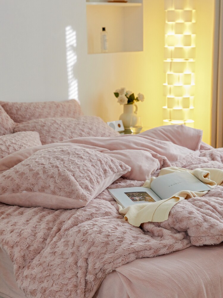 Утепленный коралловый комплект, фланелевый пододеяльник, простыня, 4 предмета