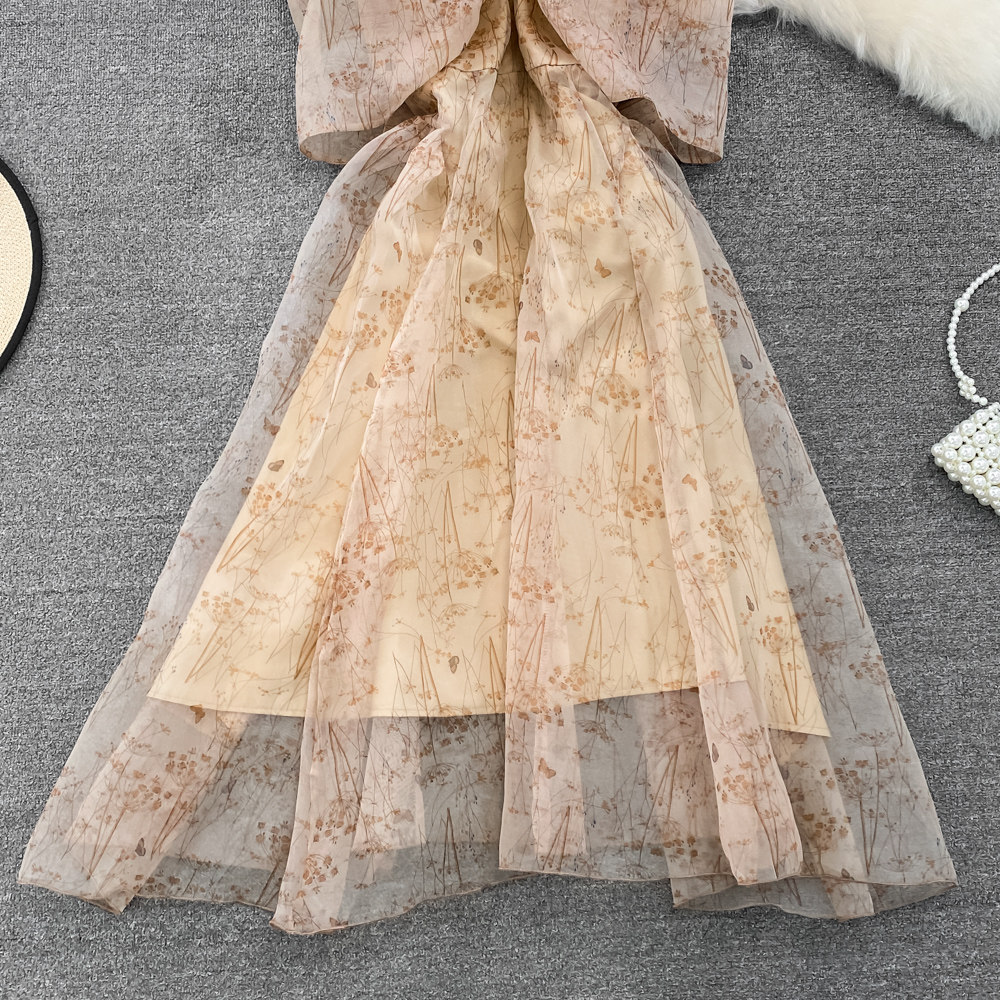 Летнее платье-комбинация с бантиком, приталенный корсет, платье, изысканный стиль, в корейском стиле, А-силуэт