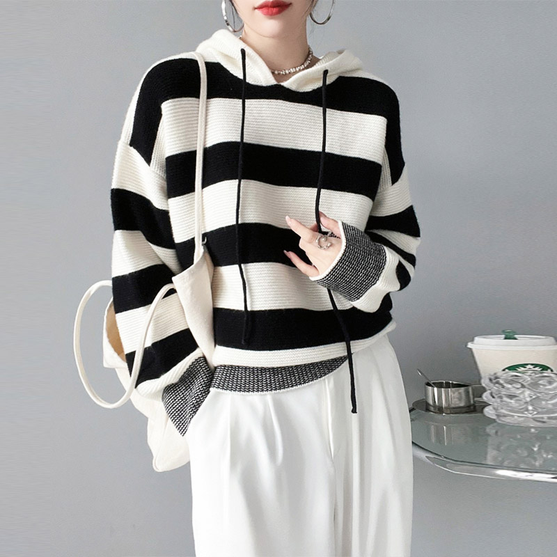 Трикотажный свитер, утепленный лонгслив, толстовка с капюшоном, свободный крой