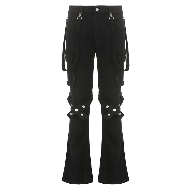 Металлическая портупея на ногу, штаны-клёш, штаны, джинсы, в американском стиле, свободный прямой крой, по фигуре