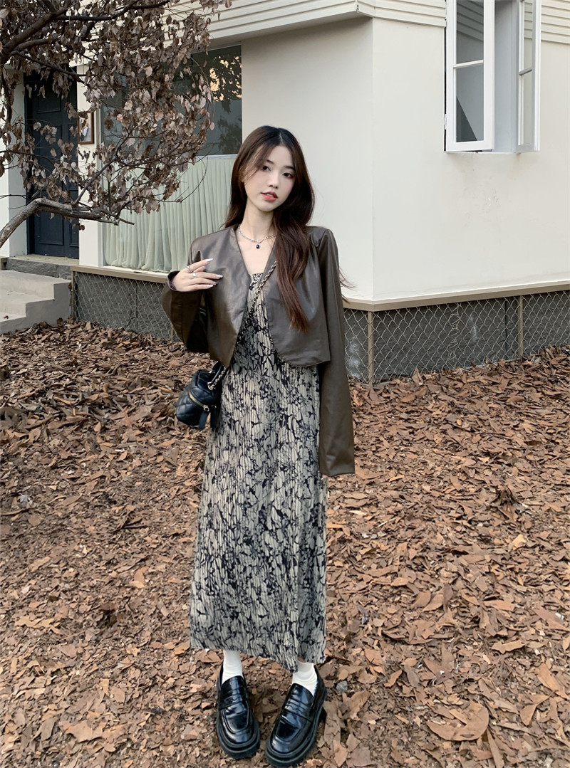 Весеннее универсальное платье, полиуретановая куртка, комплект, большой размер, подходит для полных девушек, по фигуре, простой и элегантный дизайн