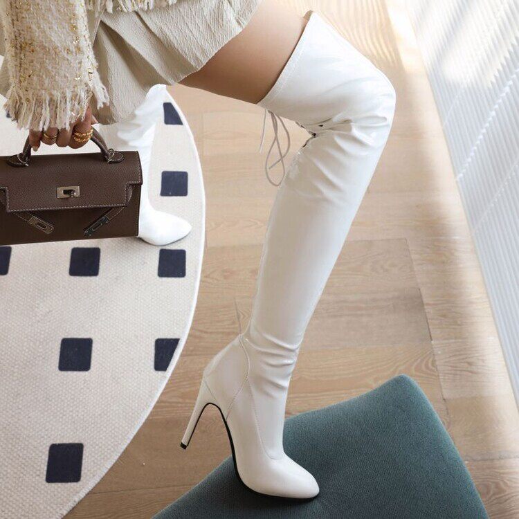 Осень и зима 2022, новые женские сапоги выше колена с острым носком и шпилькой, сексуальные экспортные большие женские рыцарские сапоги в британском стиле