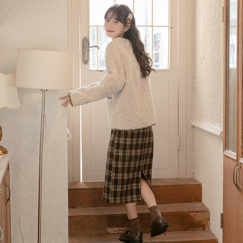 Милая осенняя шерстяная ретро японская школьная юбка, высокая талия