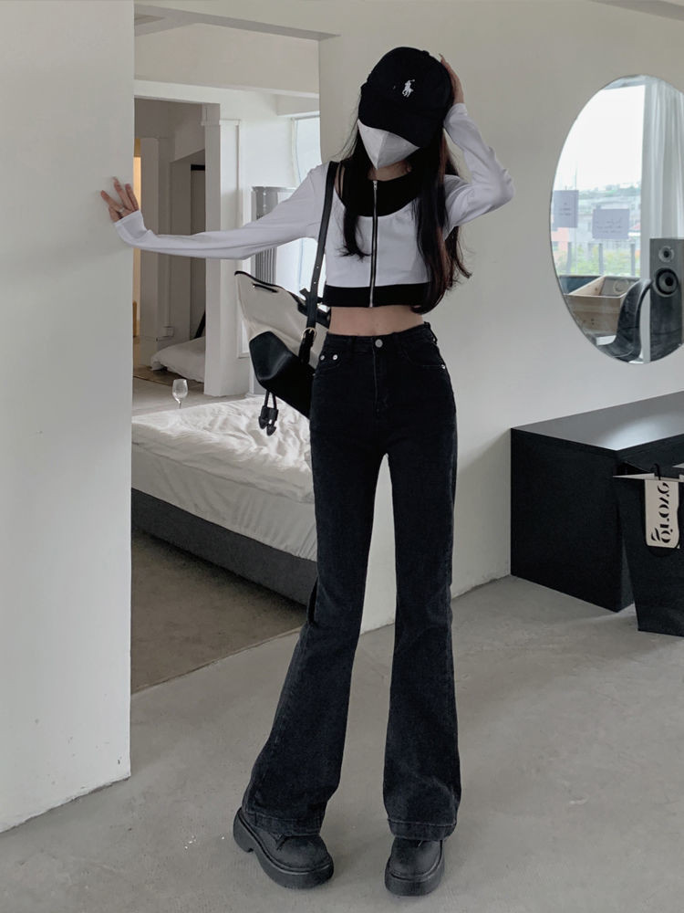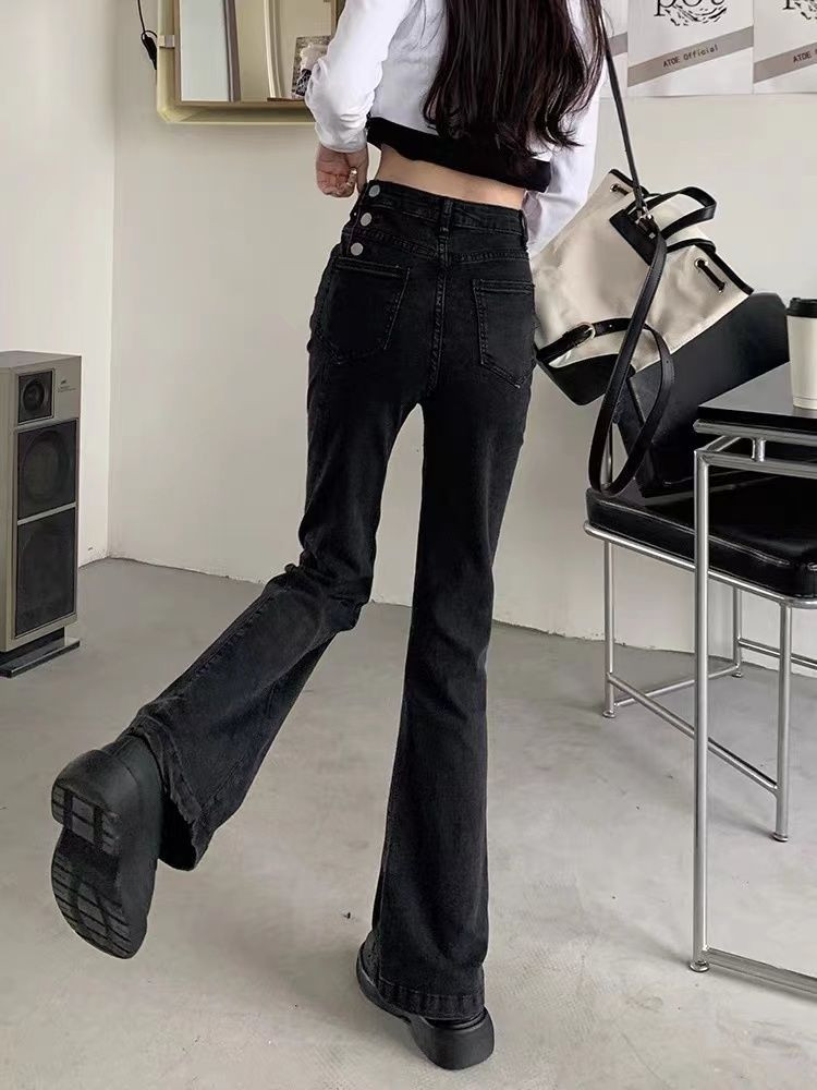 Черный мегафон, весенние осенние приталенные джинсы, штаны, высокая талия, по фигуре, подходит для подростков, свободный крой
