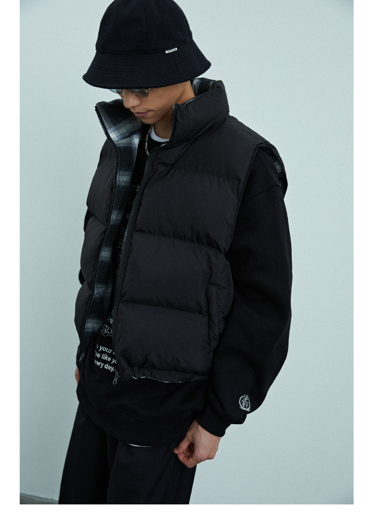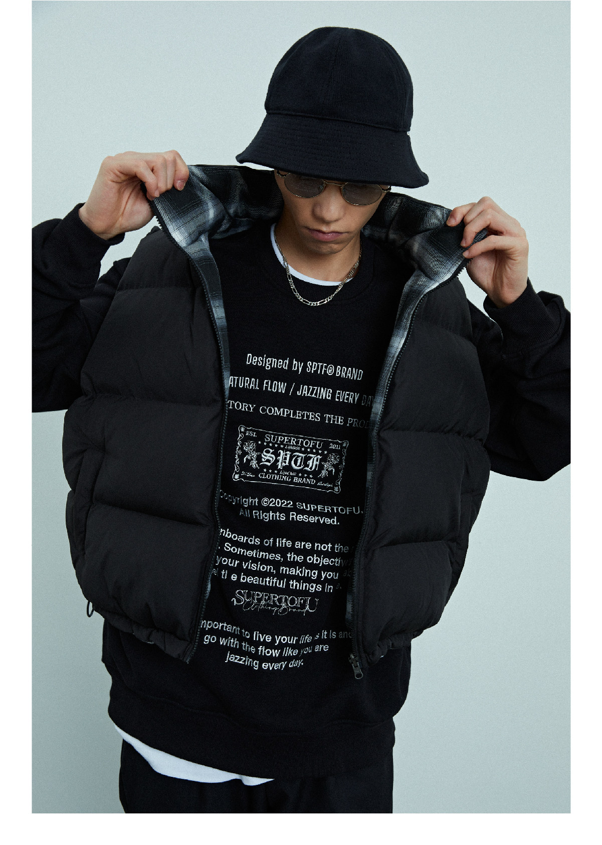 Supertofu (SPTF) AW22 может носить короткий ватный тканевый жилет с обеих сторон