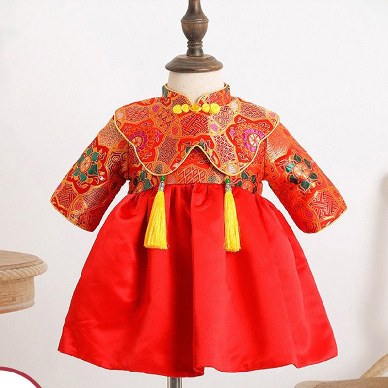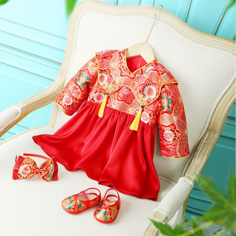 Красное детское платье для девочек, китайский стиль, подарок на день рождения