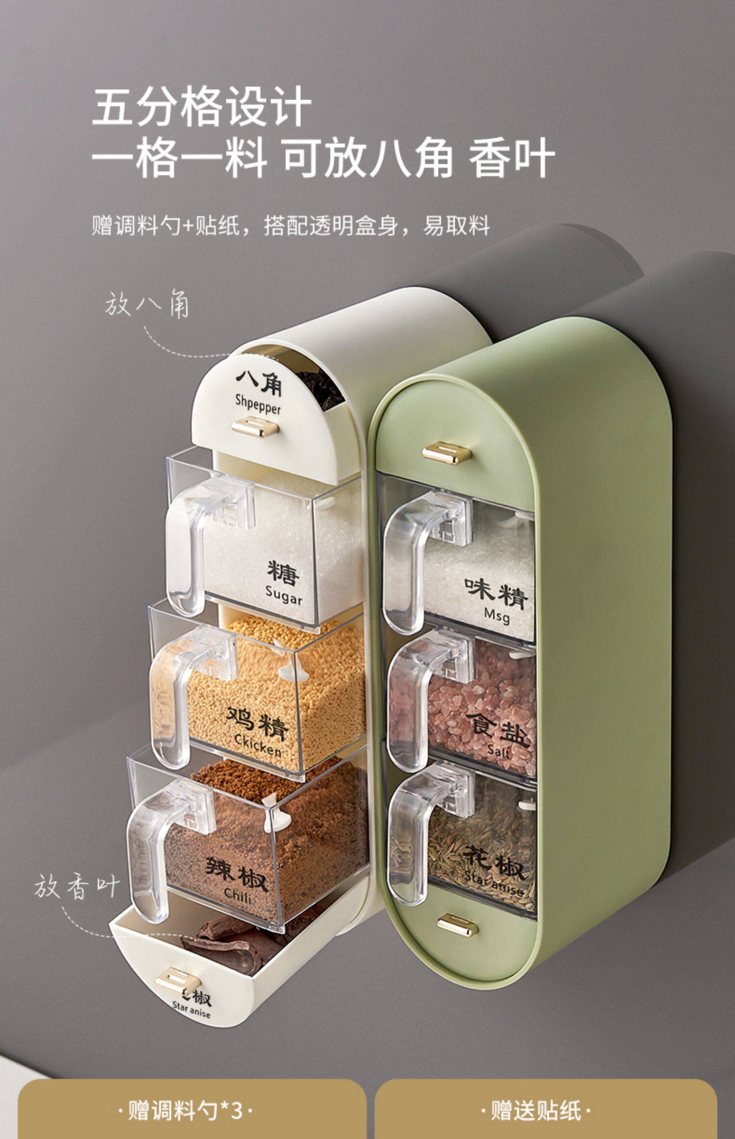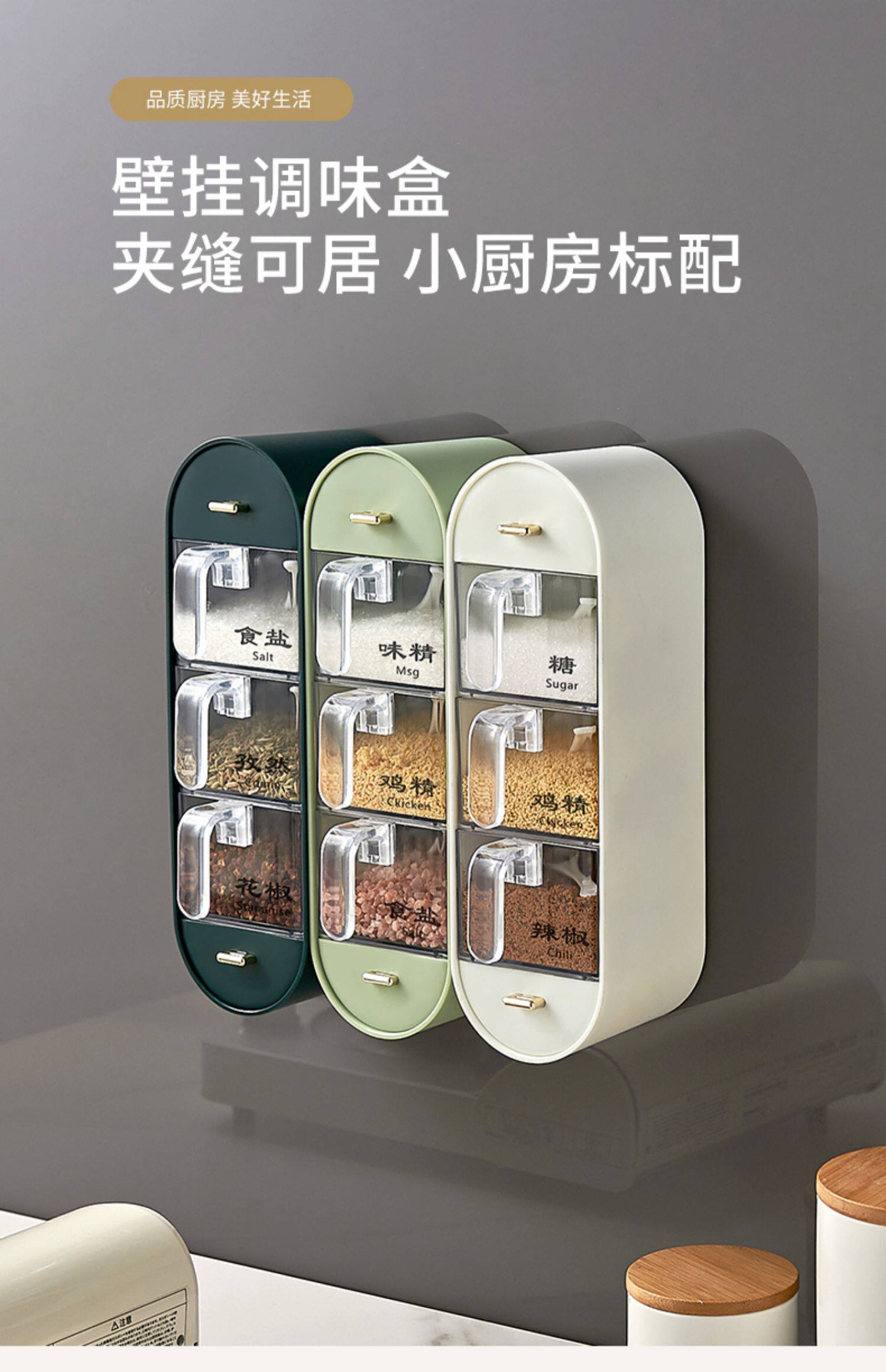 Приправа коробка соль приправы для хранения бака Комбинирование набор домашней кухни MSG Фаровые ароматы, приправы с настенными приправами