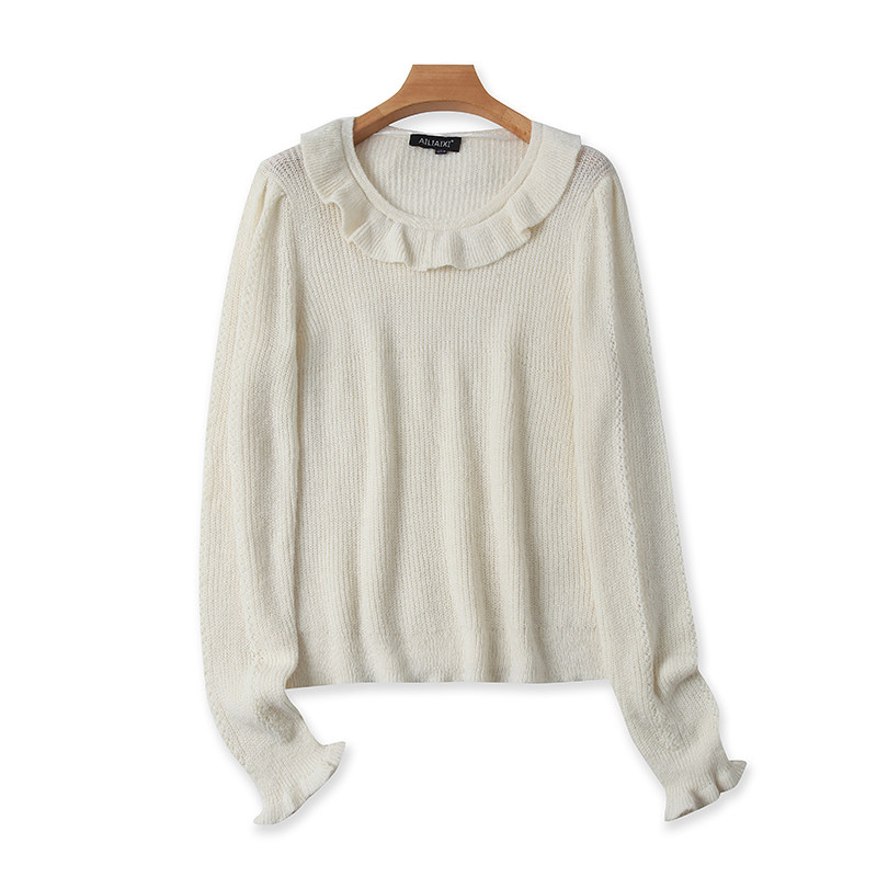 Трикотажный осенний свитер с круглым воротником, эластичный мегафон, базовые приятные телу нарукавники