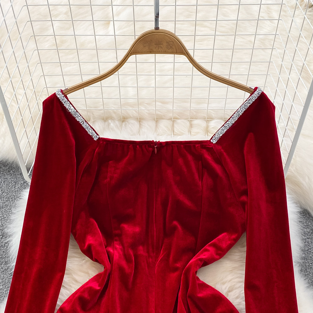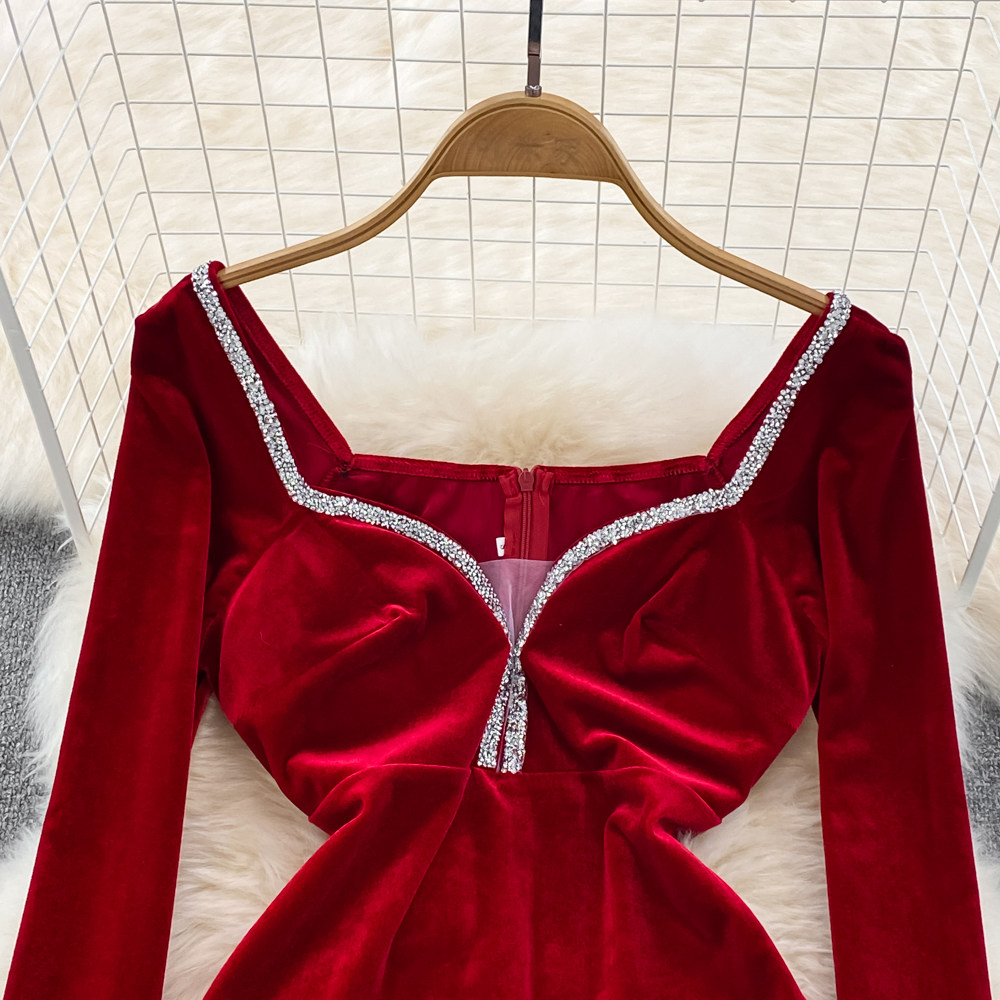 Модный приталенный сексуальный корсет, бархатное платье, квадратный вырез, по фигуре, подходит для подростков, с акцентом на бедрах