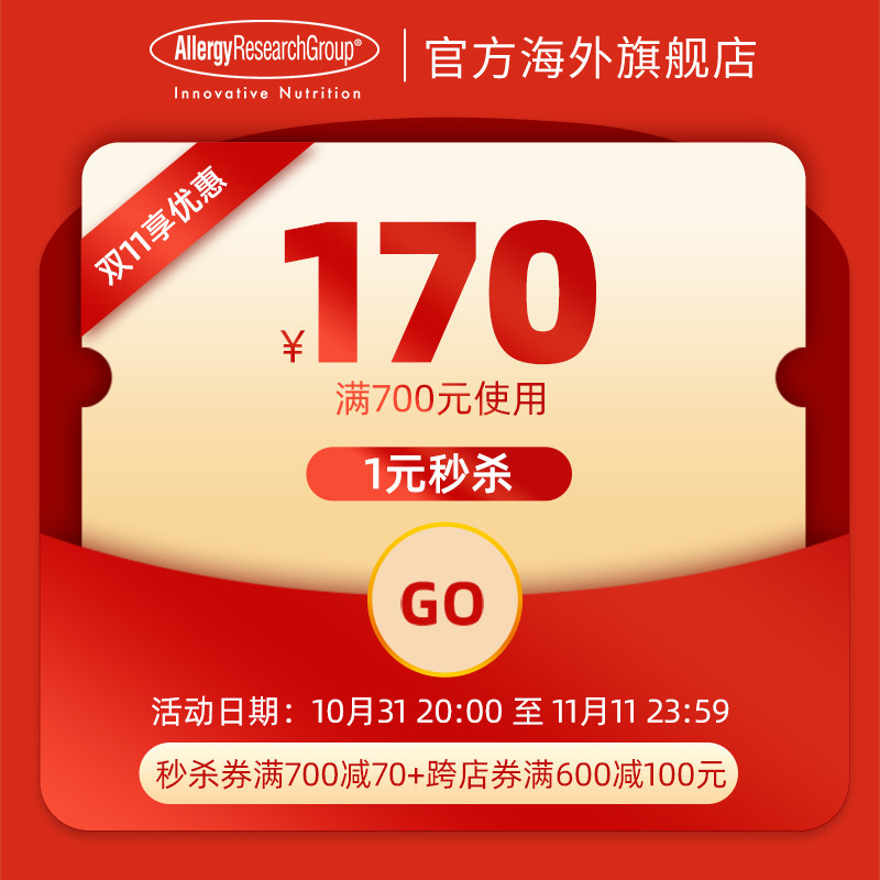 AllergyResearchGroup Overseas 700-70 Yuan Store Coupon 10/31-11/11