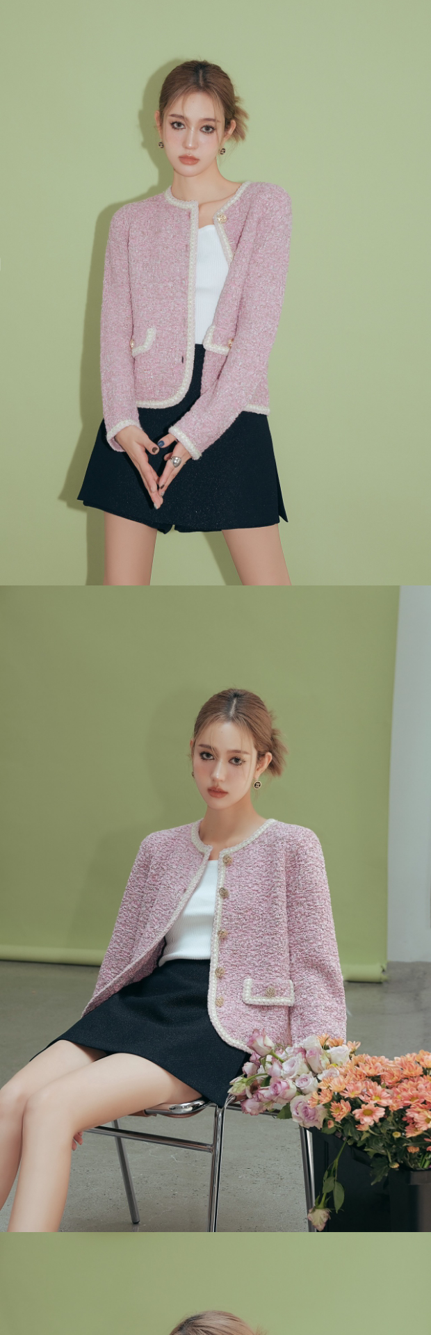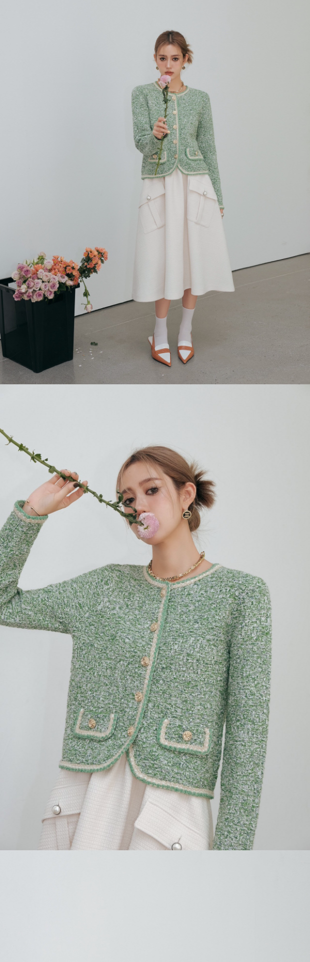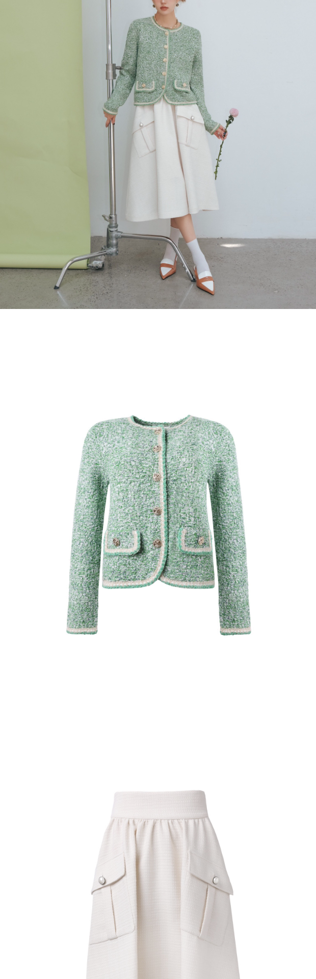 Демисезонная плетеная белая куртка, юбка в складку, длинная юбка, в стиле Шанель