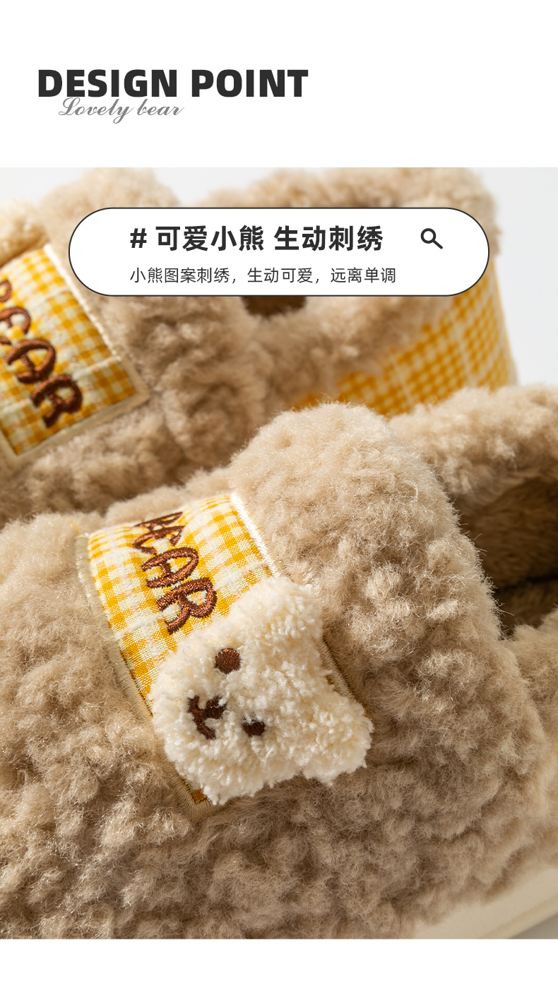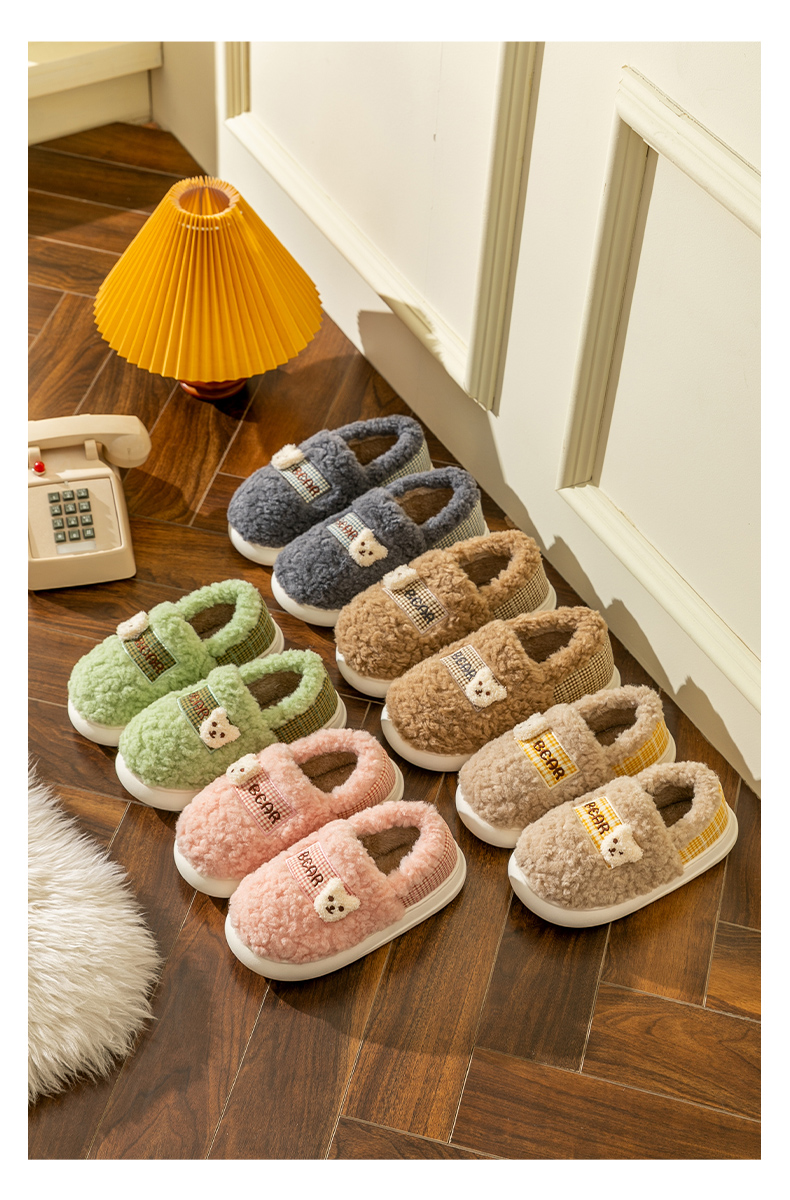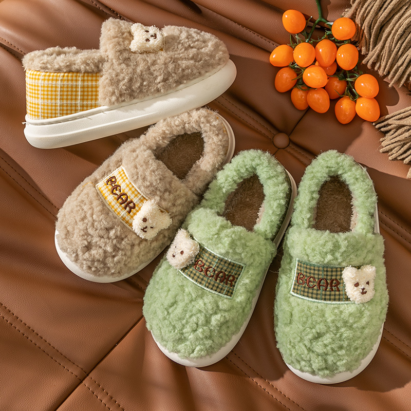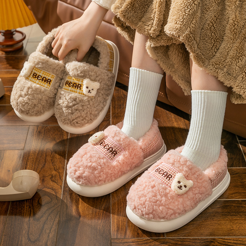 Тапочки, милая мультяшная нескользящая демисезонная обувь, плюшевые, с медвежатами