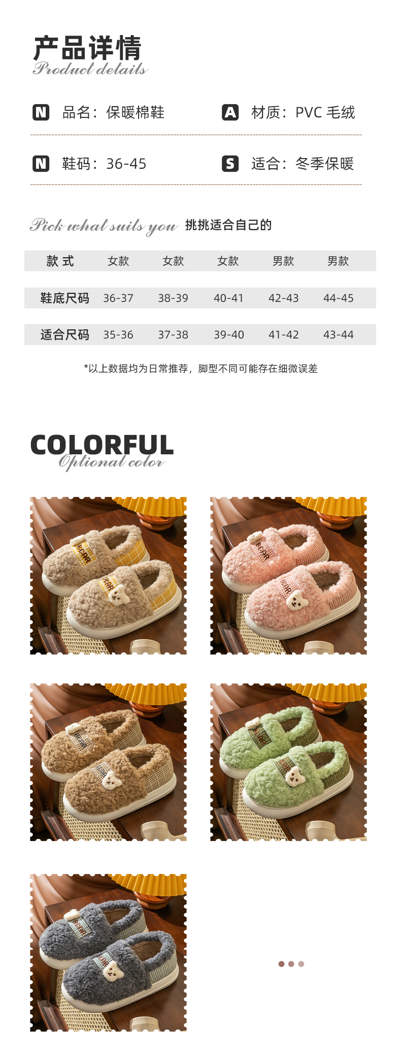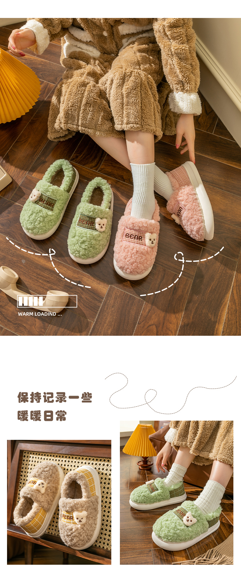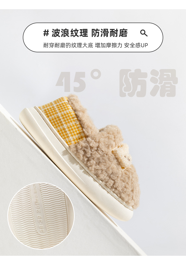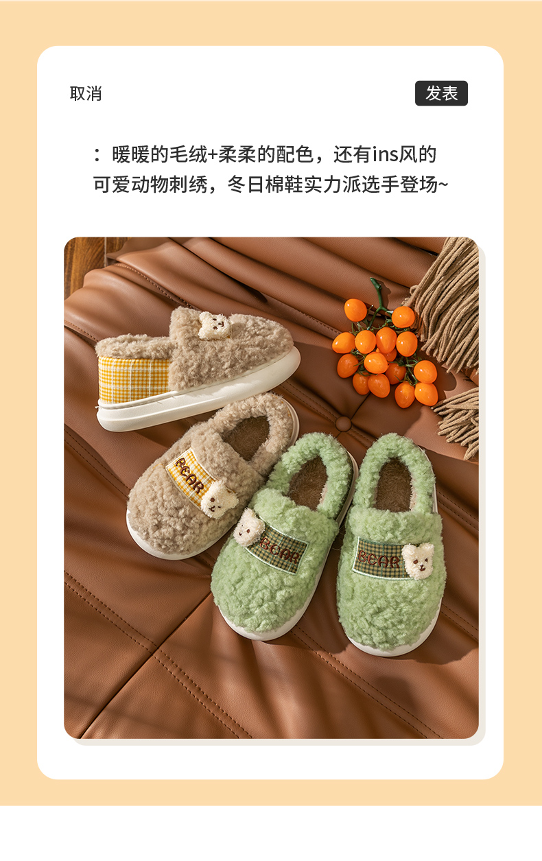 Тапочки, милая мультяшная нескользящая демисезонная обувь, плюшевые, с медвежатами