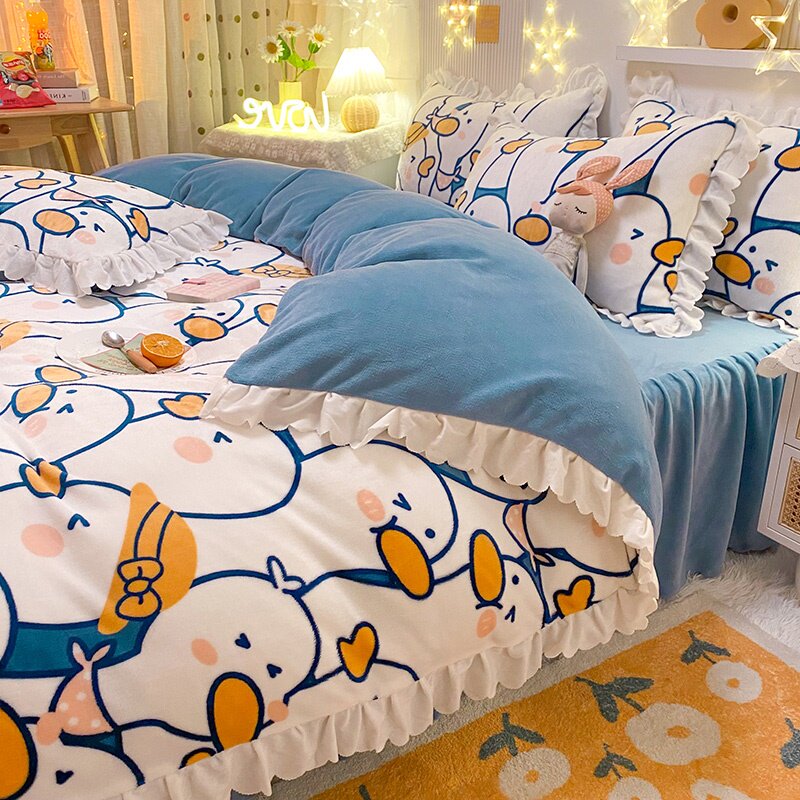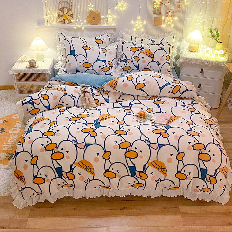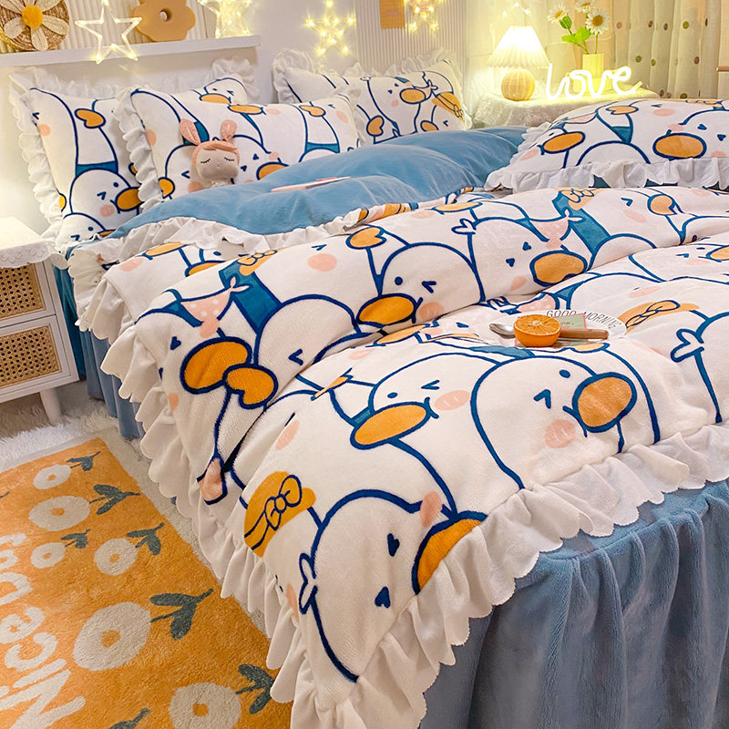 Фланелевый коралловый комплект, покрывало для школьников и студентов, пододеяльник, зимняя простыня, 4 предмета