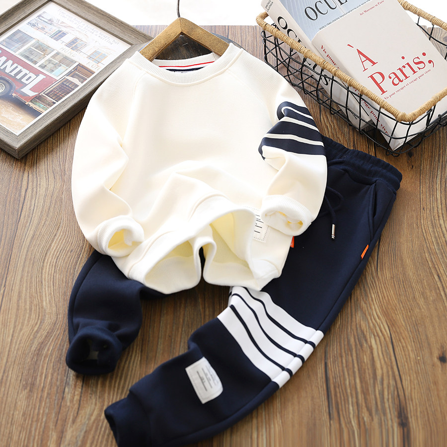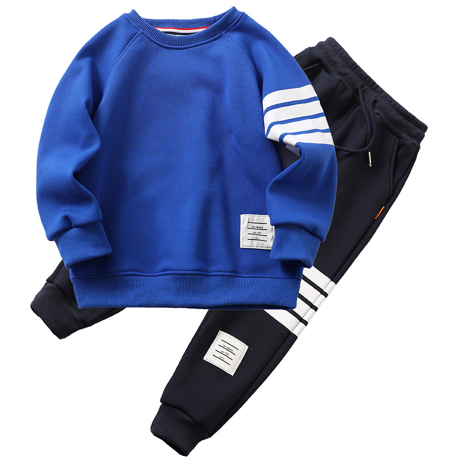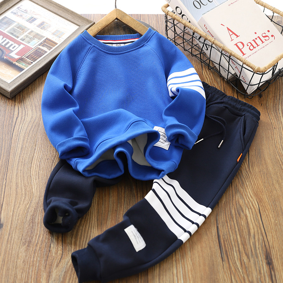 Утепленный демисезонный комплект для мальчиков, детская бархатная утепленная толстовка, комбинезон, подходит для подростков