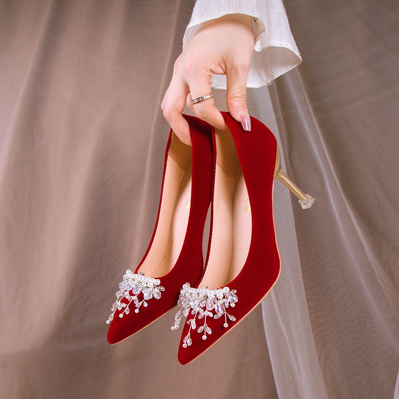 Красные свадебные туфли, обувь, традиционный свадебный наряд Сюхэ на высоком каблуке для невесты, свадебное платье для беременных, коллекция 2023