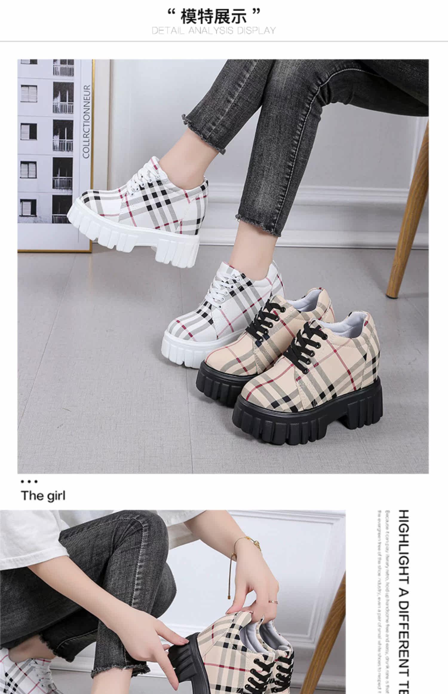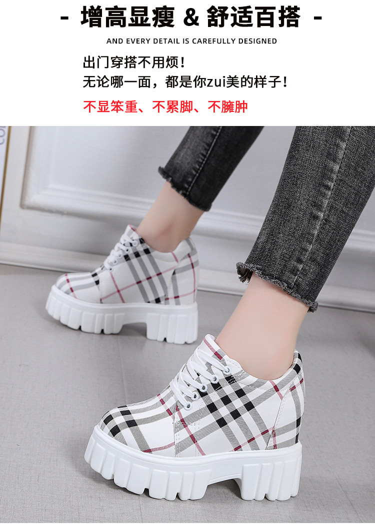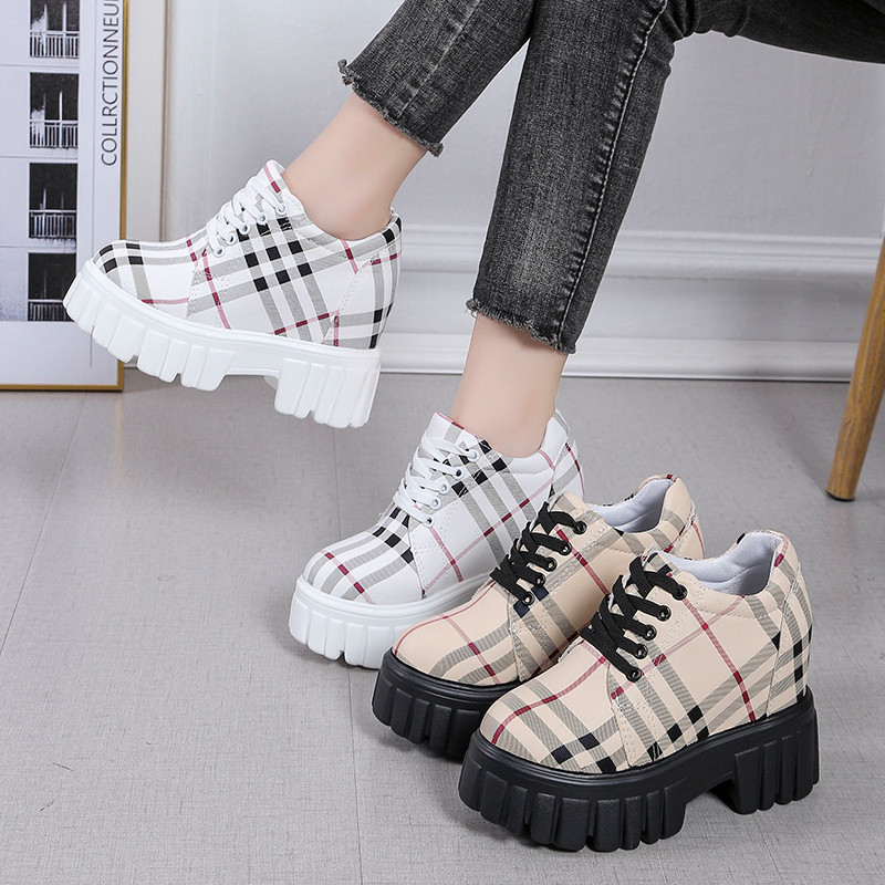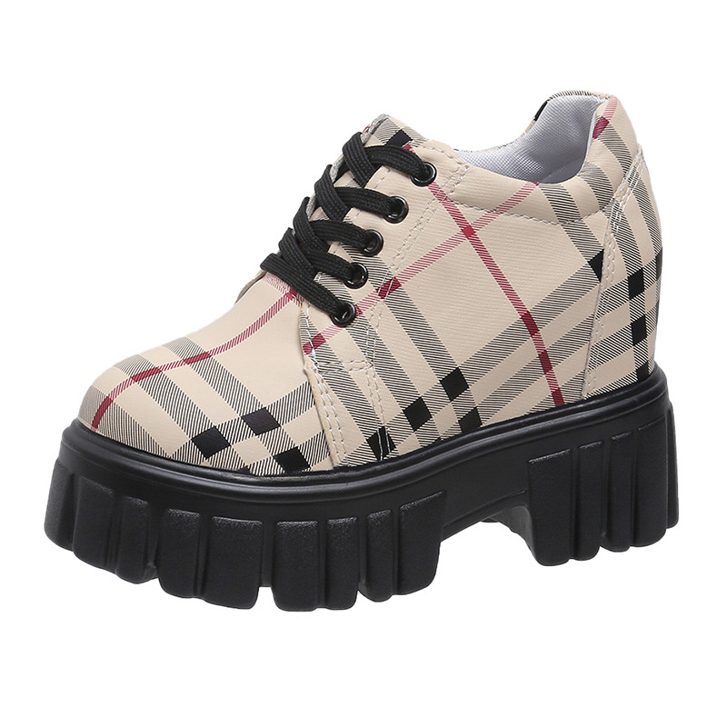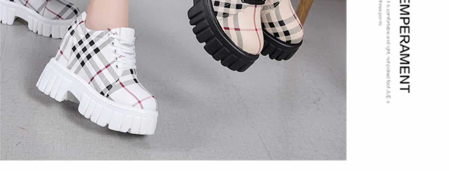 2022 новая осенняя стильная повседневная обувь, увеличивающая рост, модная клетчатая универсальная обувь на танкетке на маленьком высоком каблуке и платформе, маленькие кожаные туфли