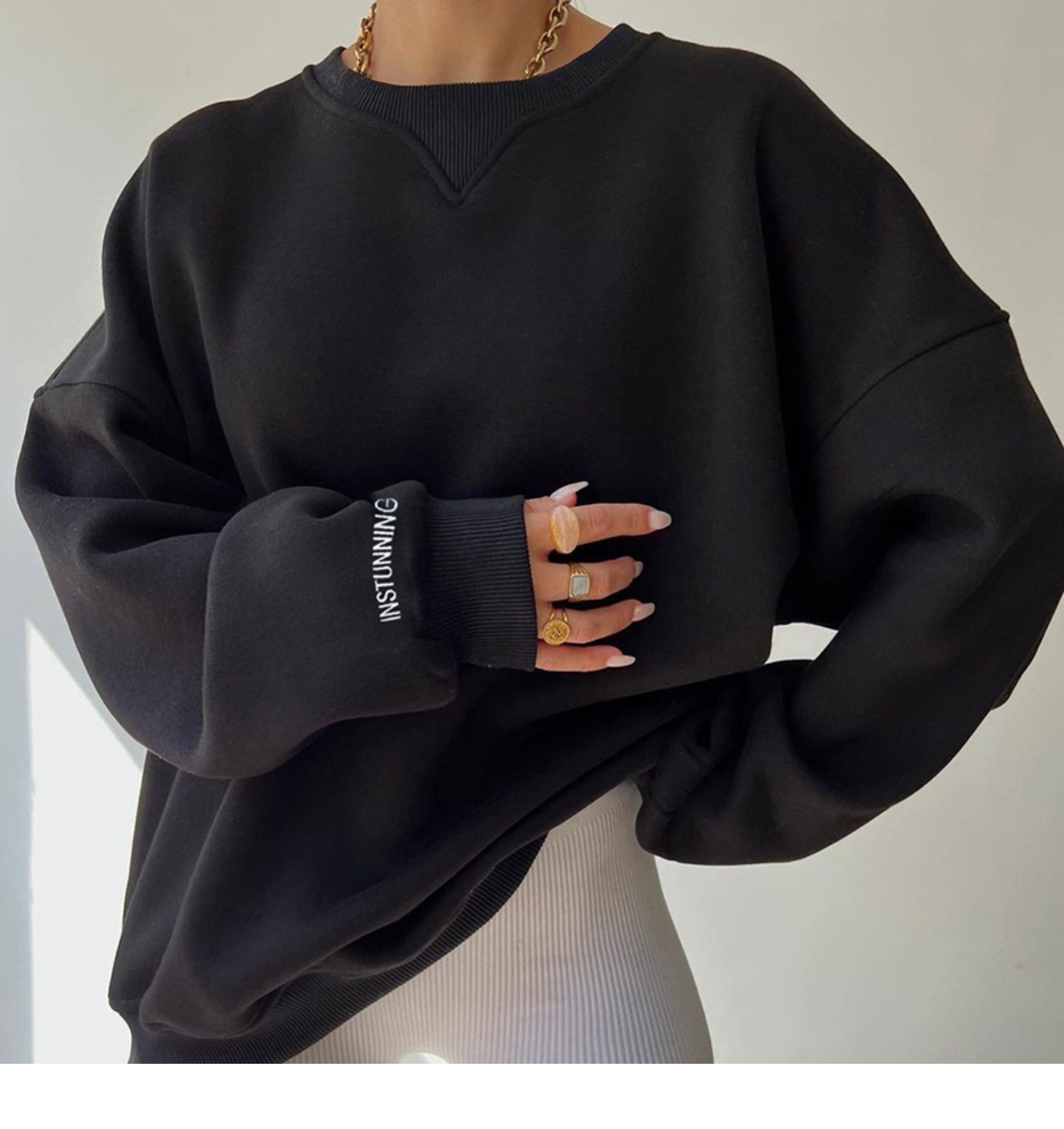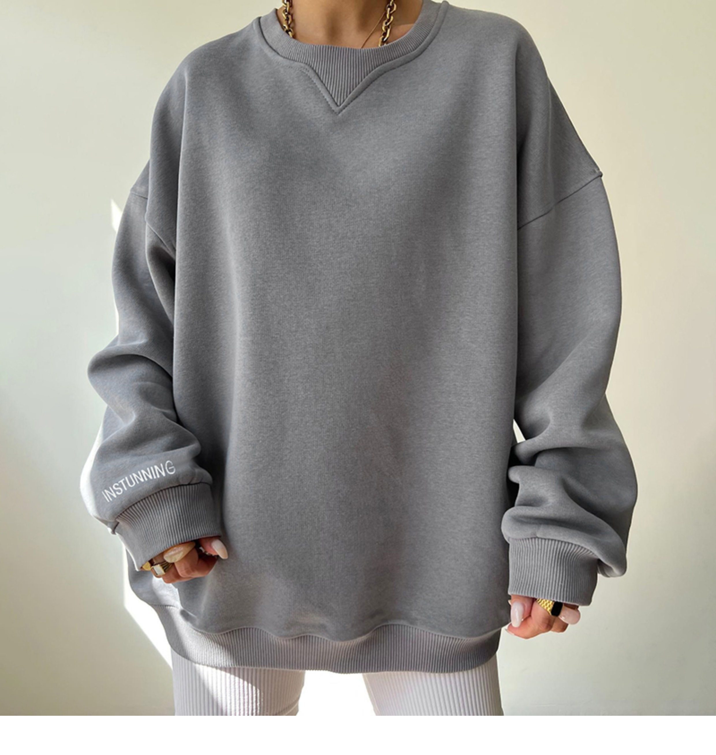 Демисезонный лонгслив с круглым воротником для отдыха, европейский стиль, оверсайз