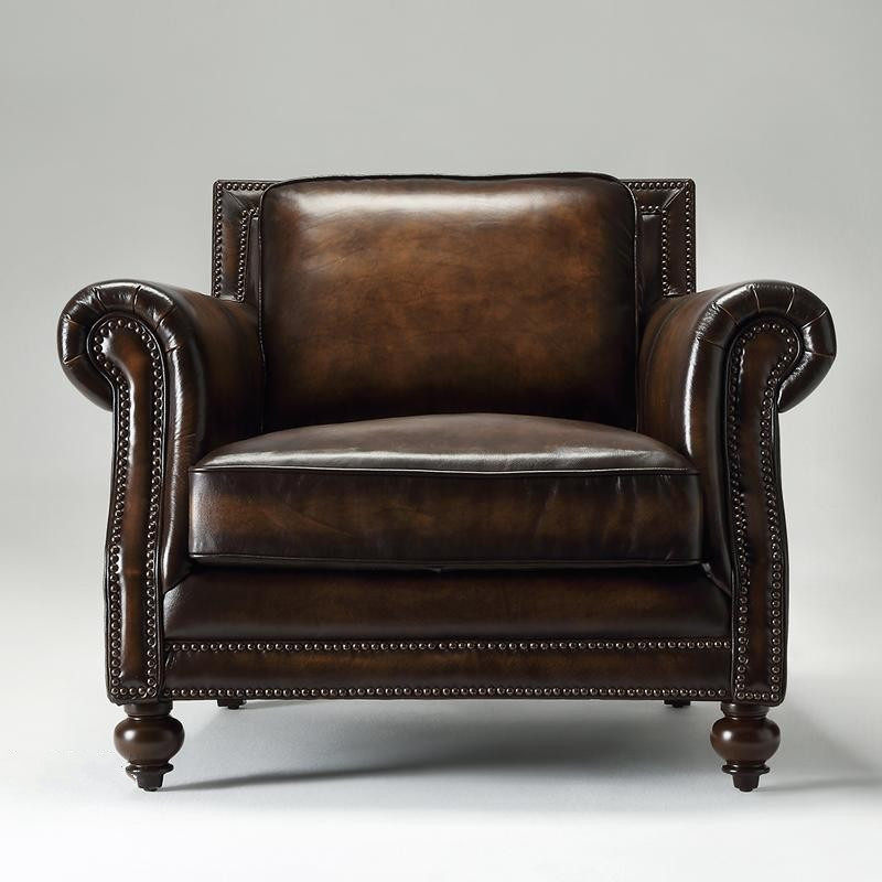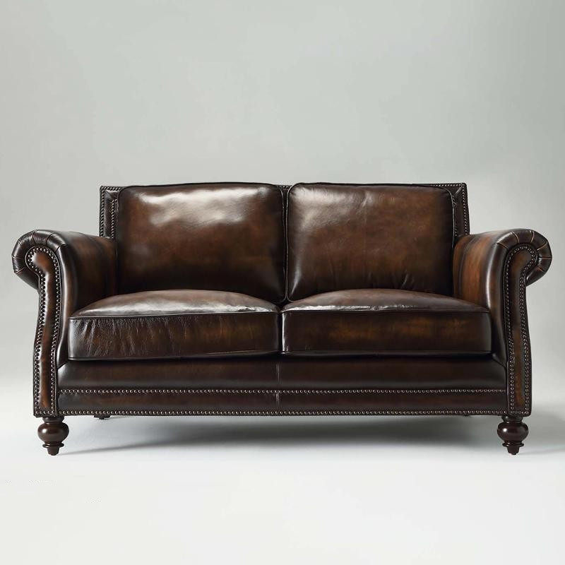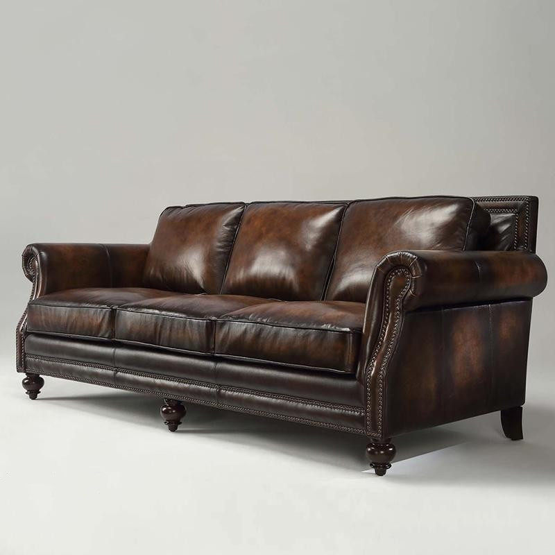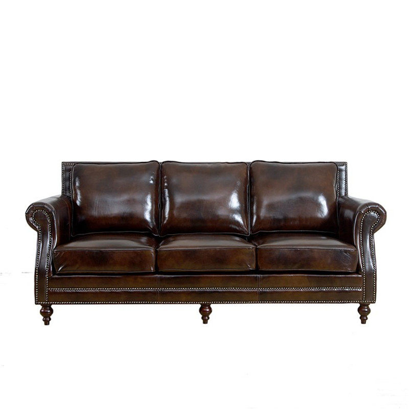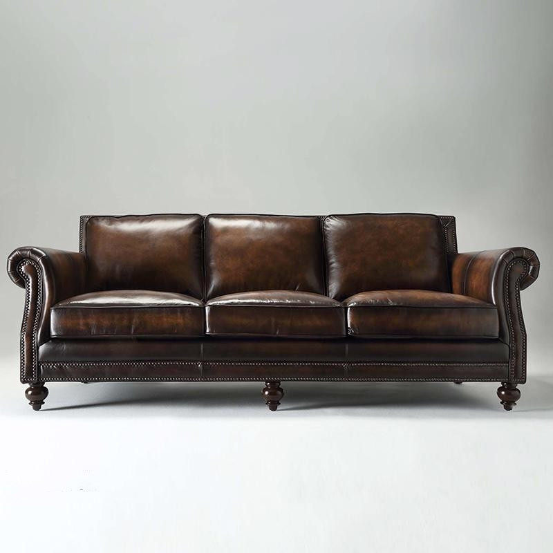 Ретро кожаный коричневый диван, в американском стиле, воловья кожа