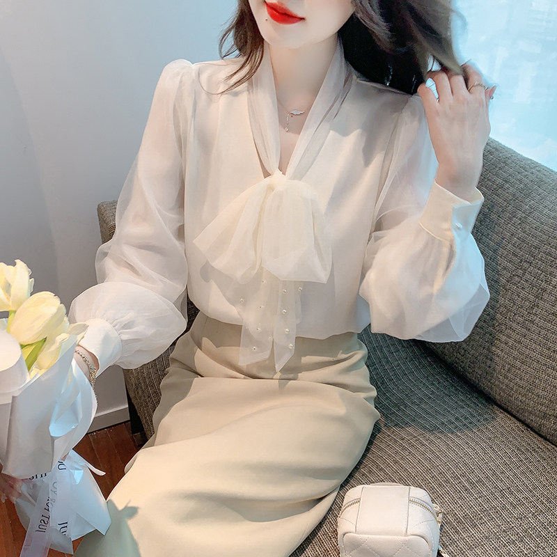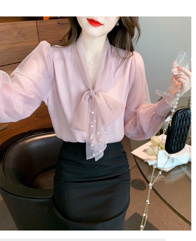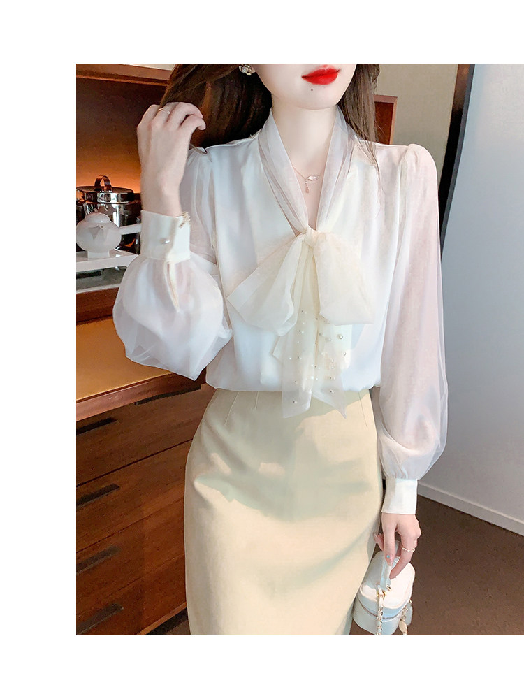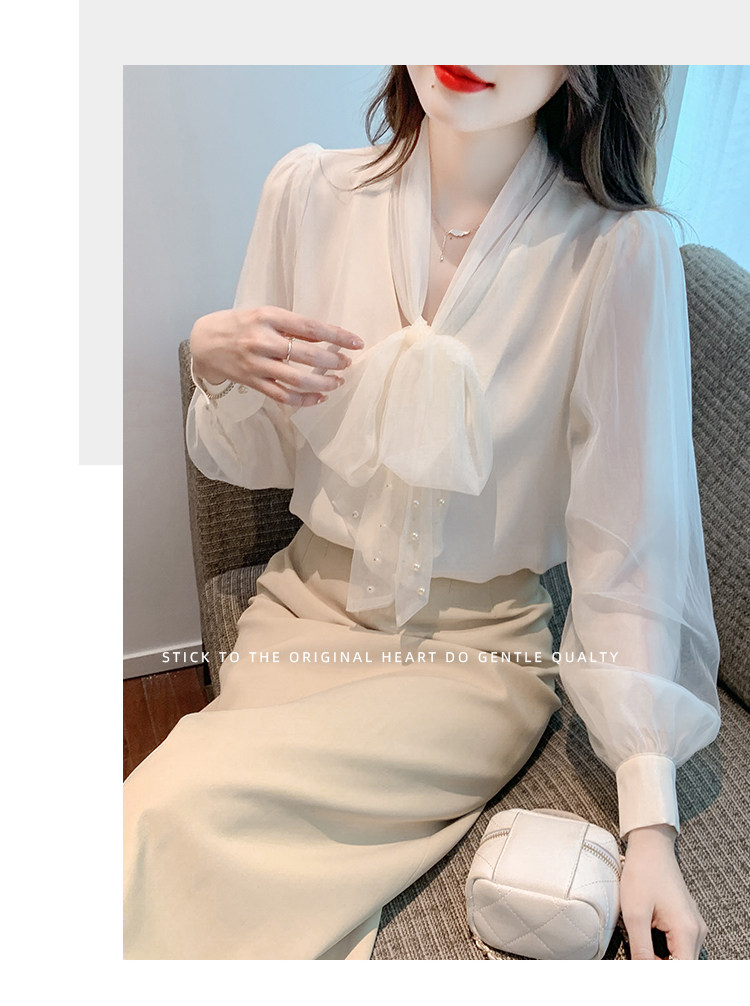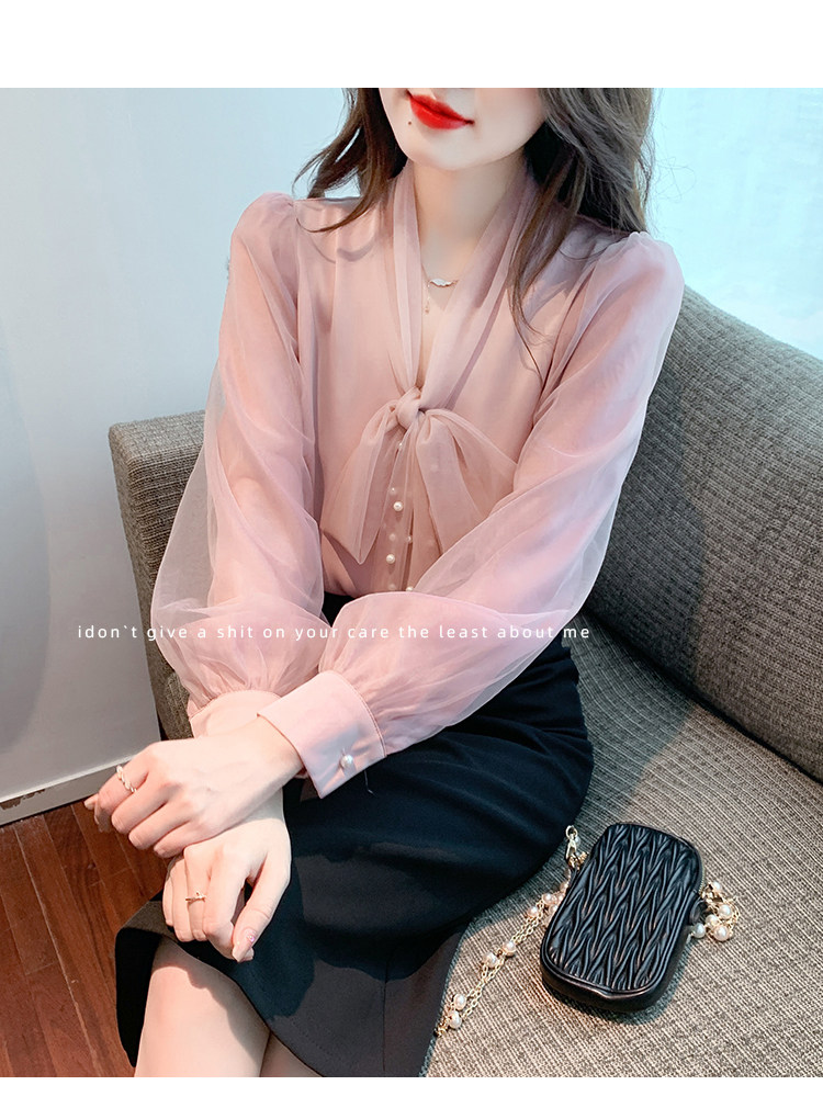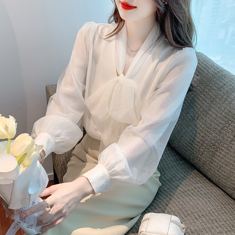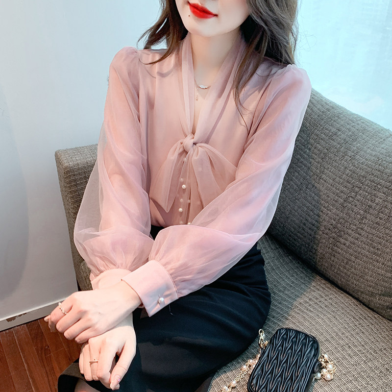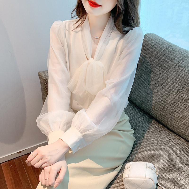 Кружевная шелковая шифоновая рубашка, лонгслив, французский стиль, городской стиль