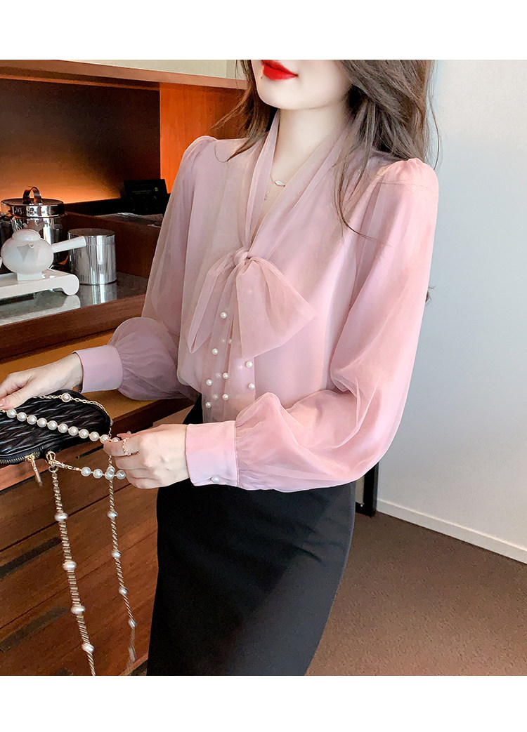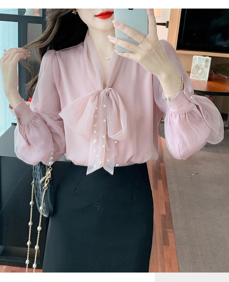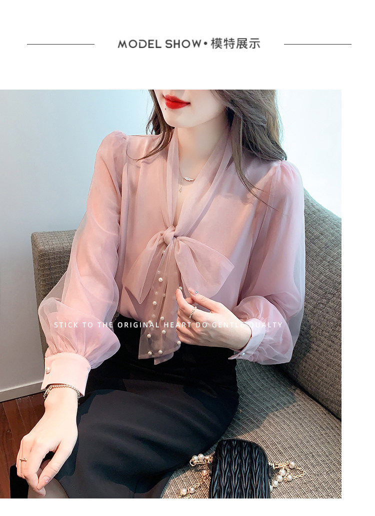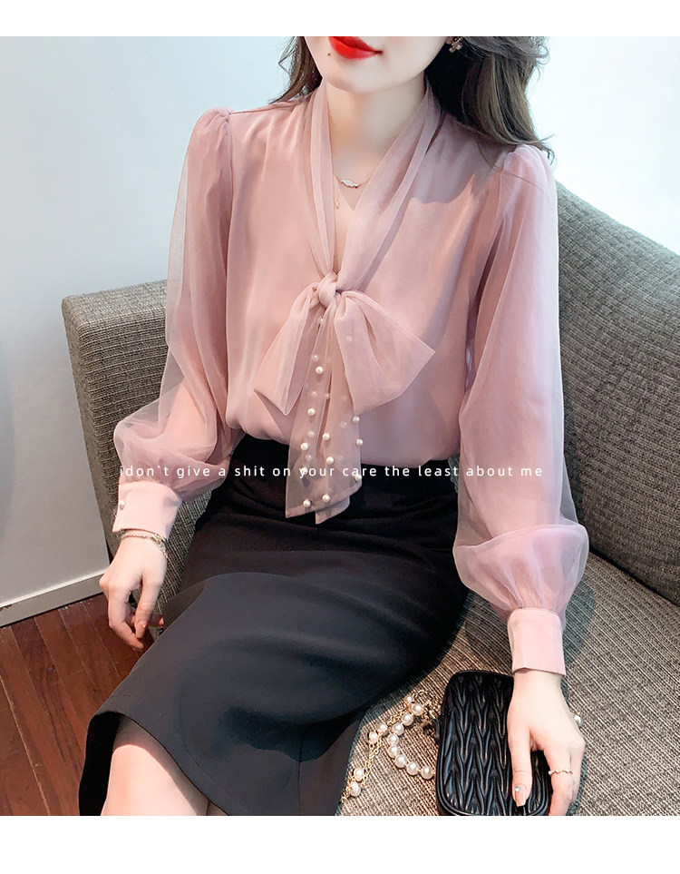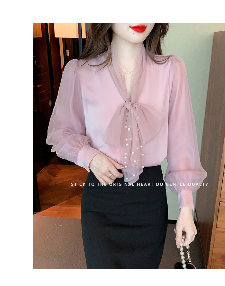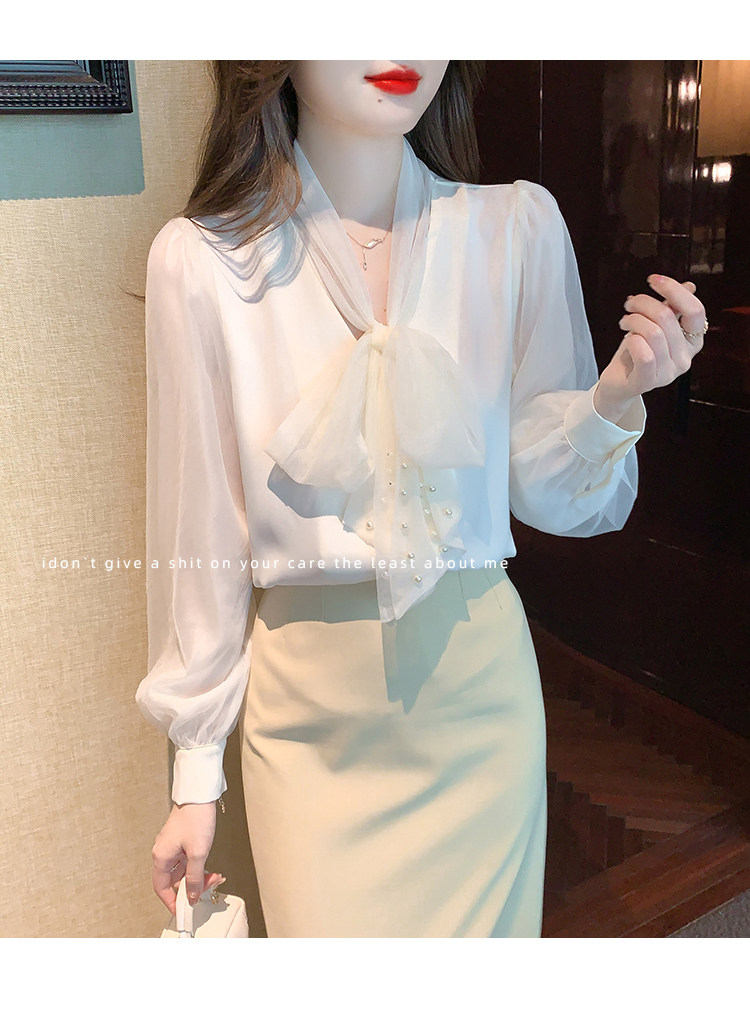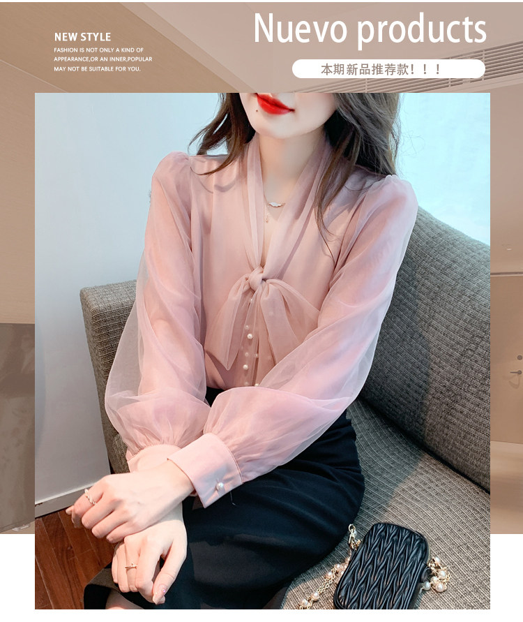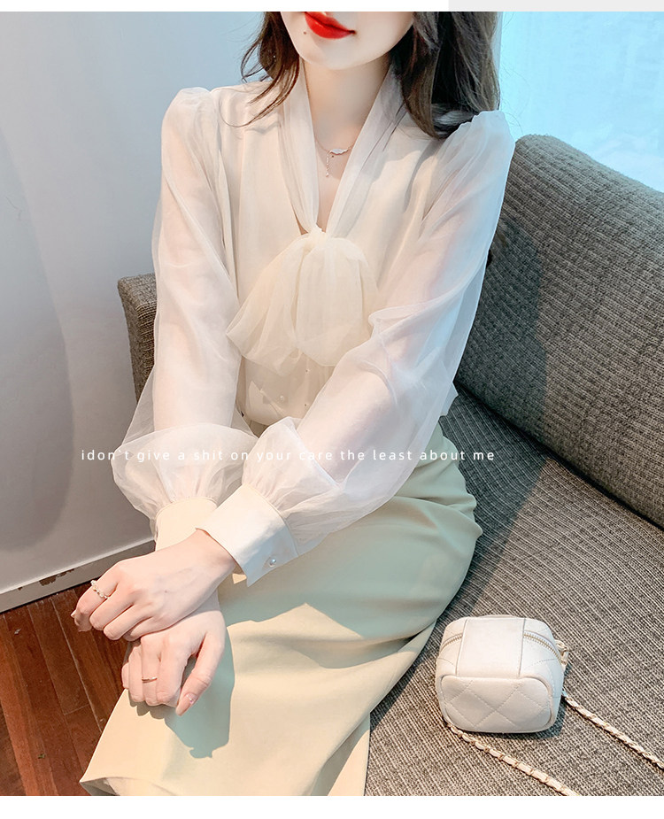 Кружевная шелковая шифоновая рубашка, лонгслив, французский стиль, городской стиль
