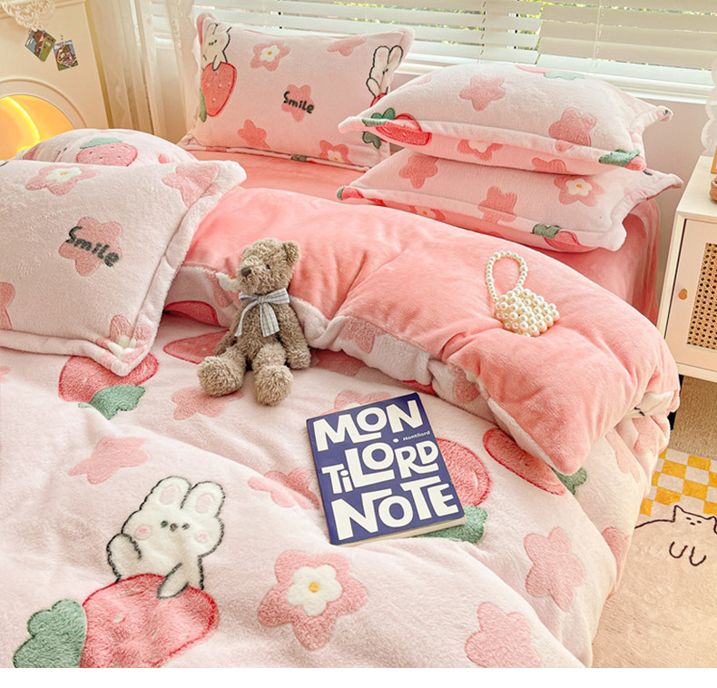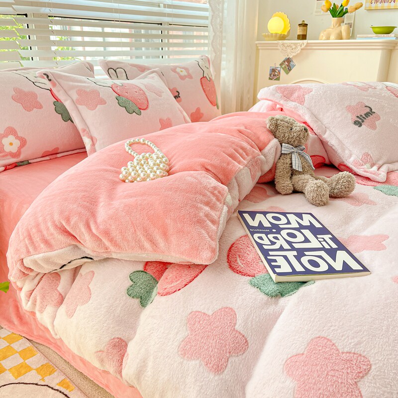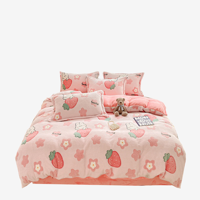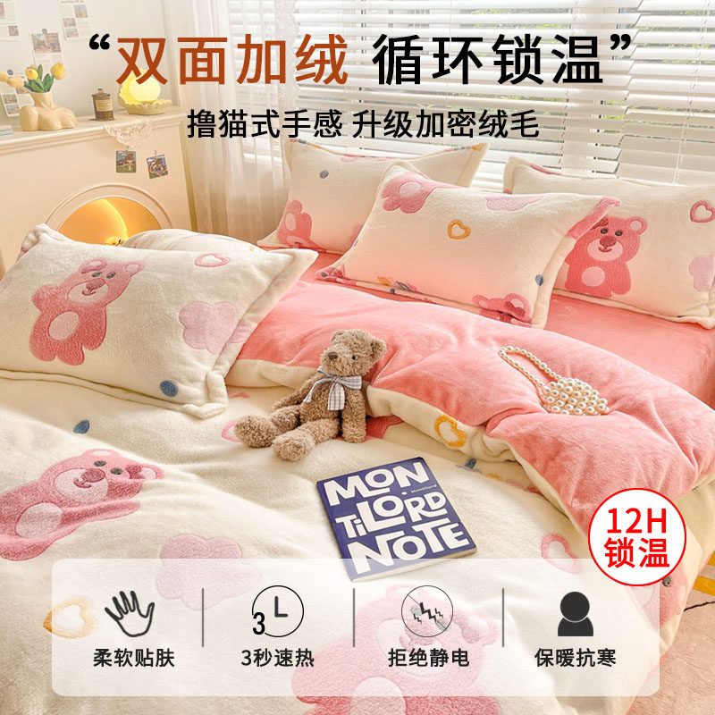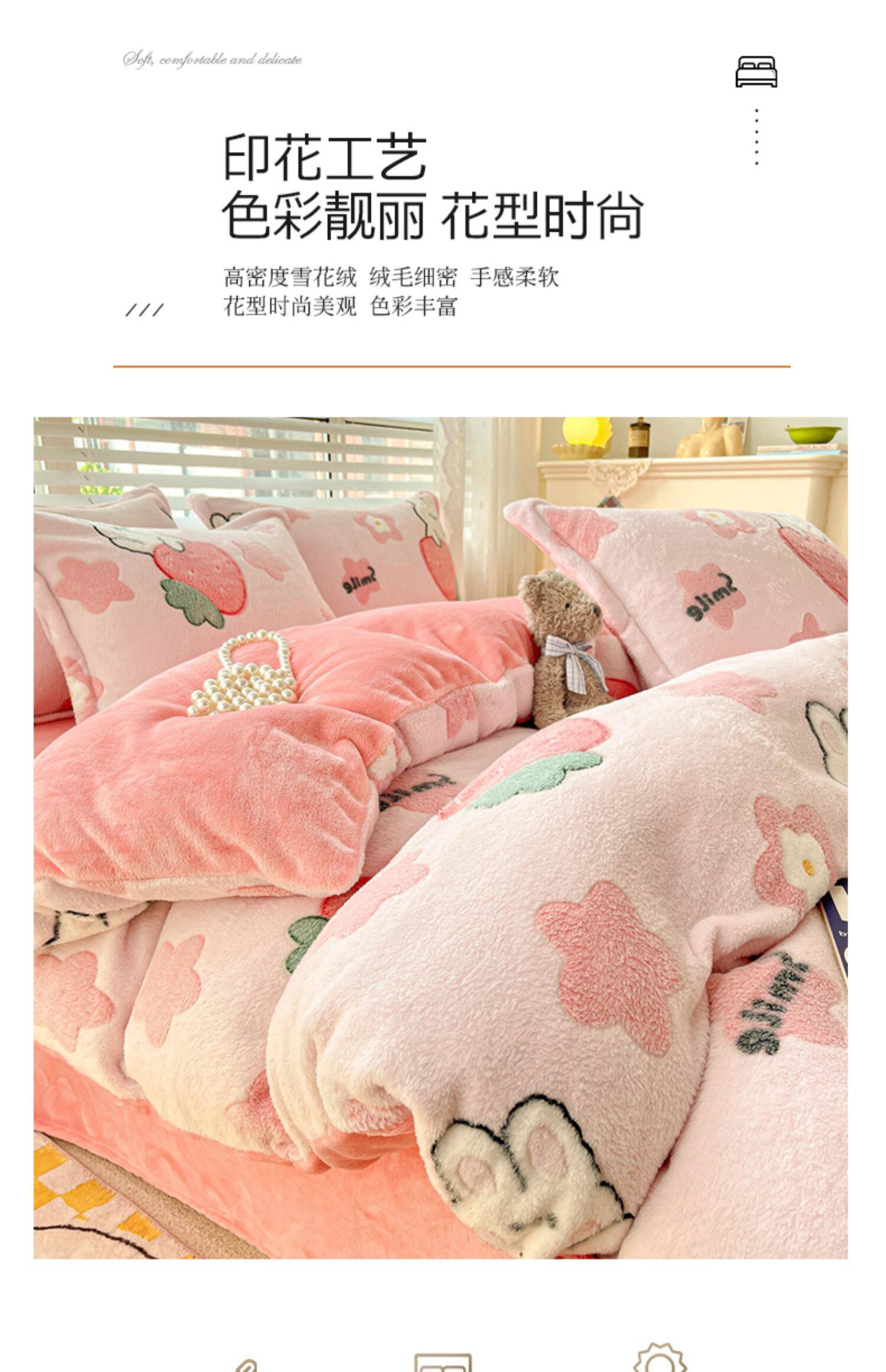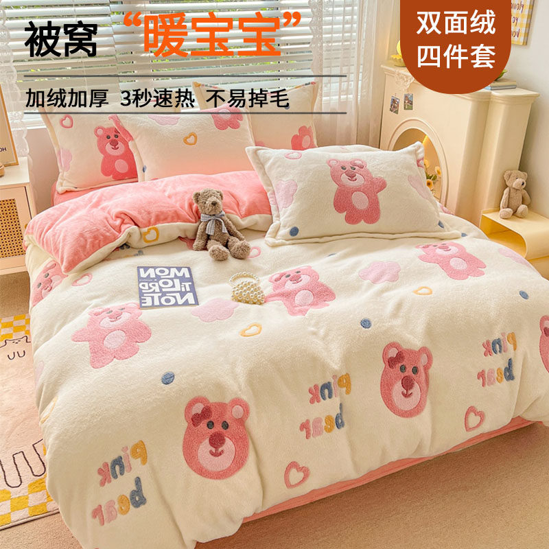 Удерживающий тепло фланелевый коралловый комплект, двусторонное покрывало, пододеяльник, простыня, 4 предмета, увеличенная толщина
