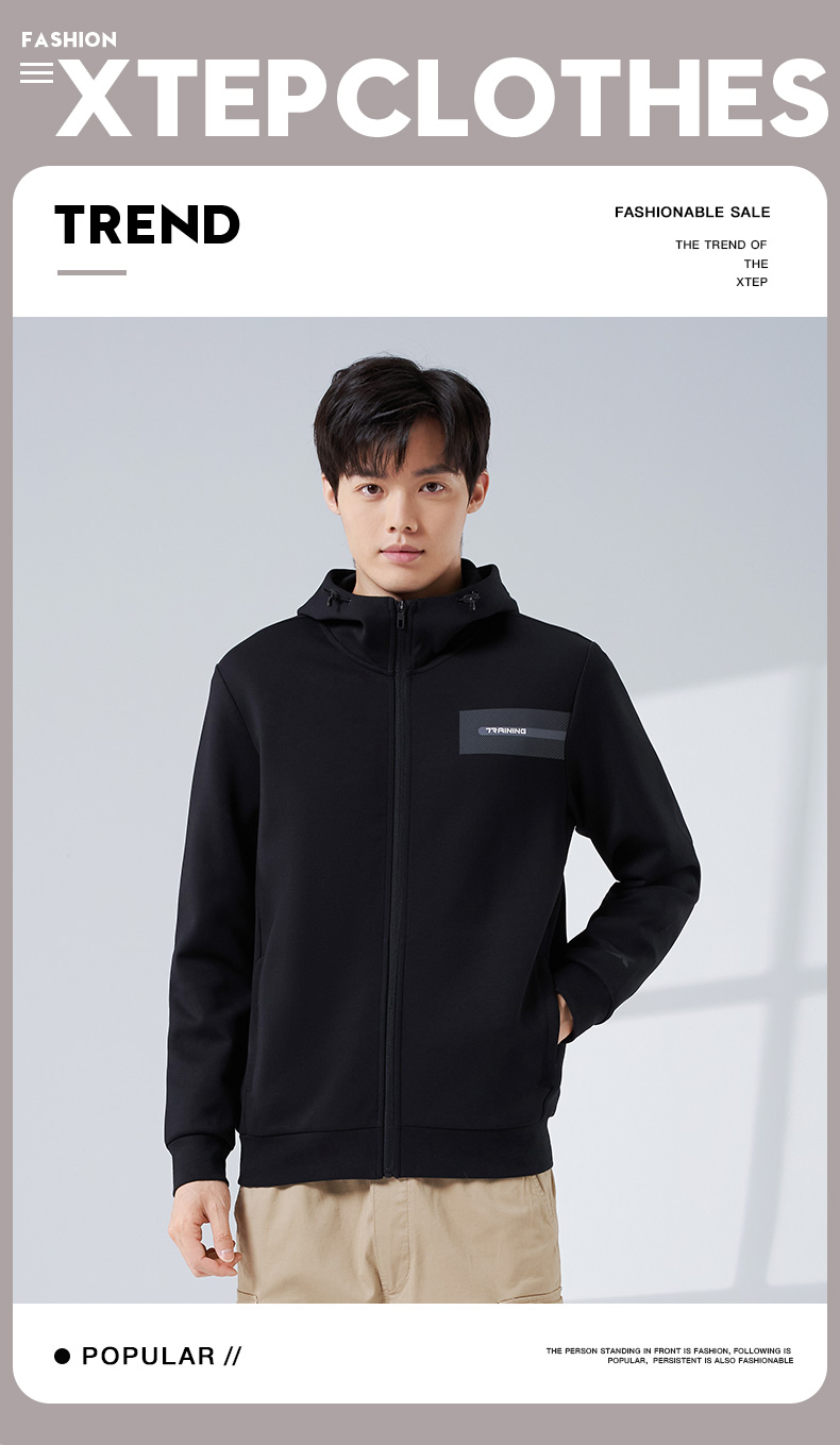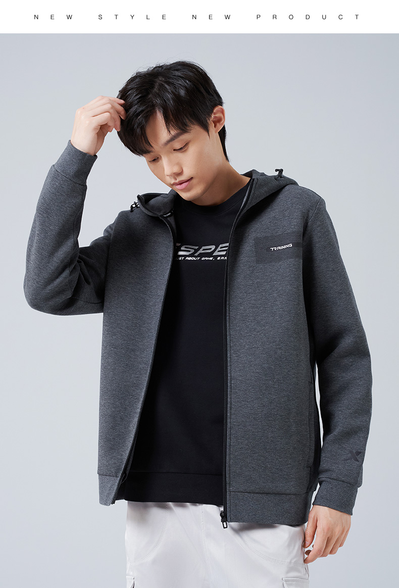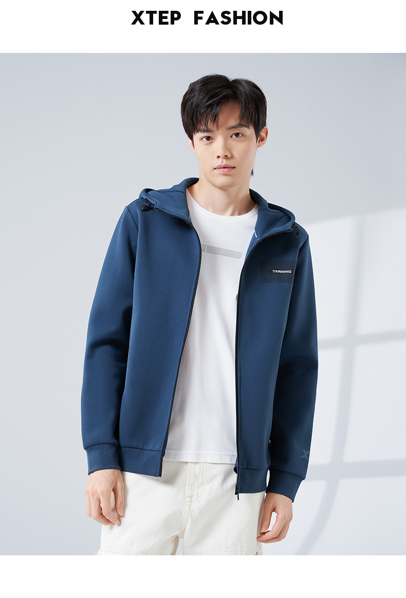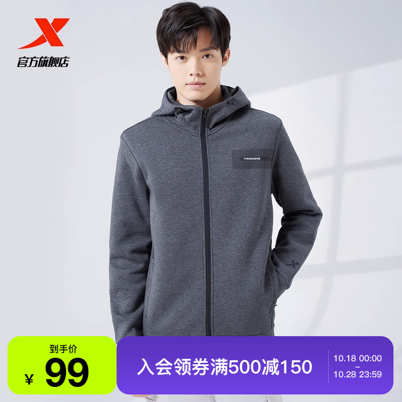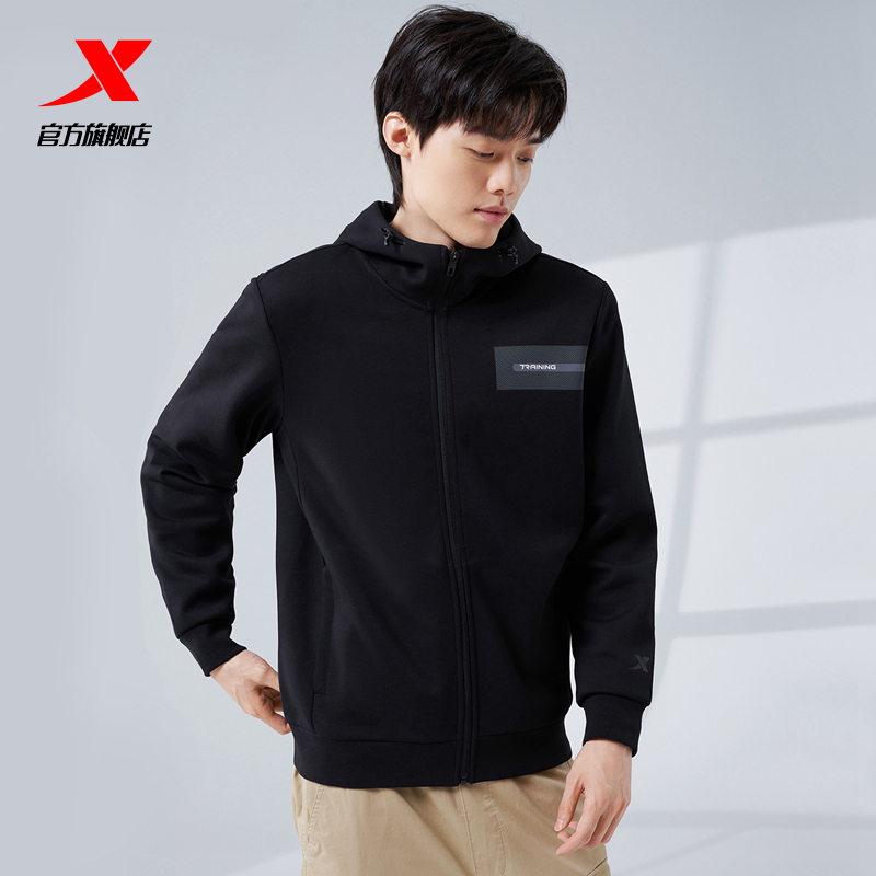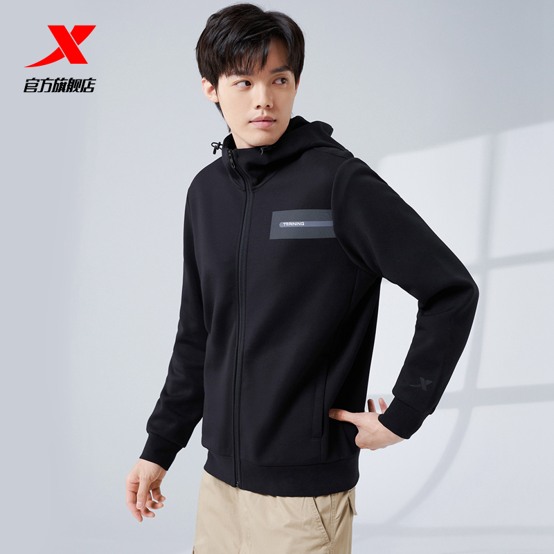 Xtep, мужская толстовка с капюшоном, кардиган, утепленный лонгслив, спортивный костюм для тренировок, для бега