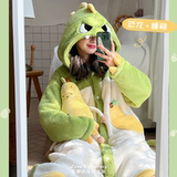 Пижама, коралловый бархатный зимний милый динозавр, длинный банный халат, плюшевая акула, для влюбленных