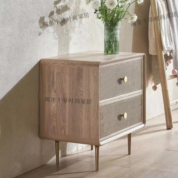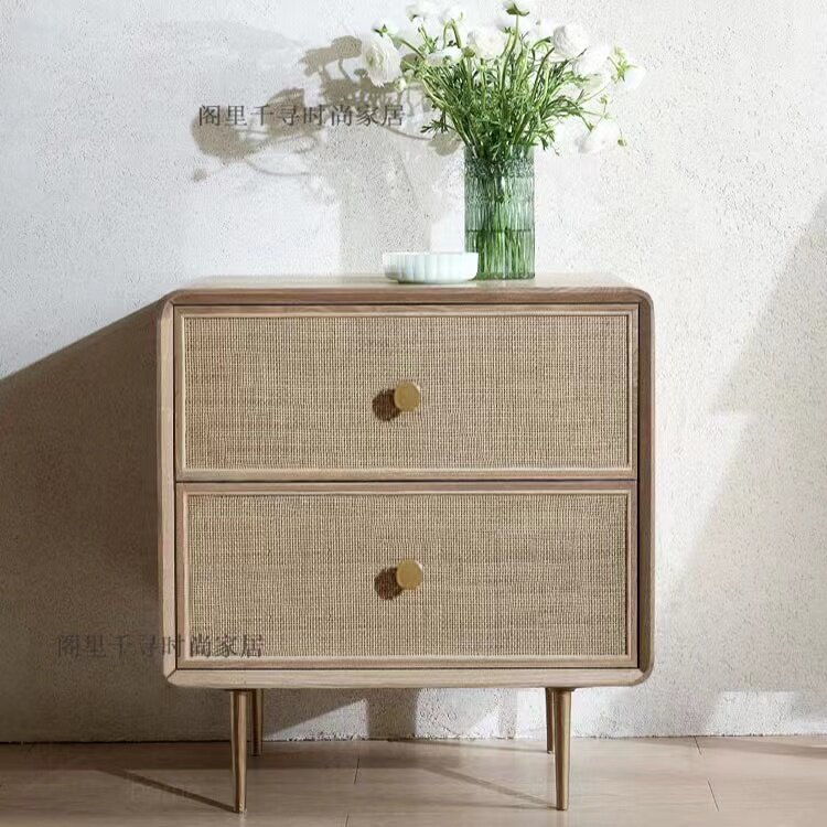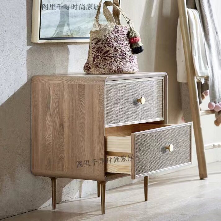 Скандинавская прикроватная тумбочка из цельного дерева из ротанга в стиле ваби-саби, диван, боковой шкаф, американский ретро-свет, роскошный шкаф с ящиком B & B на заказ, см