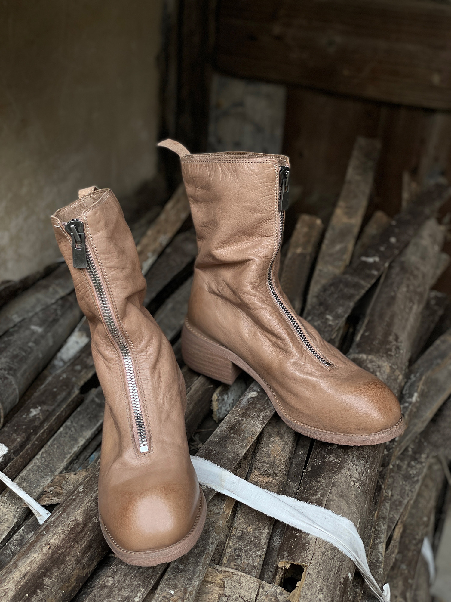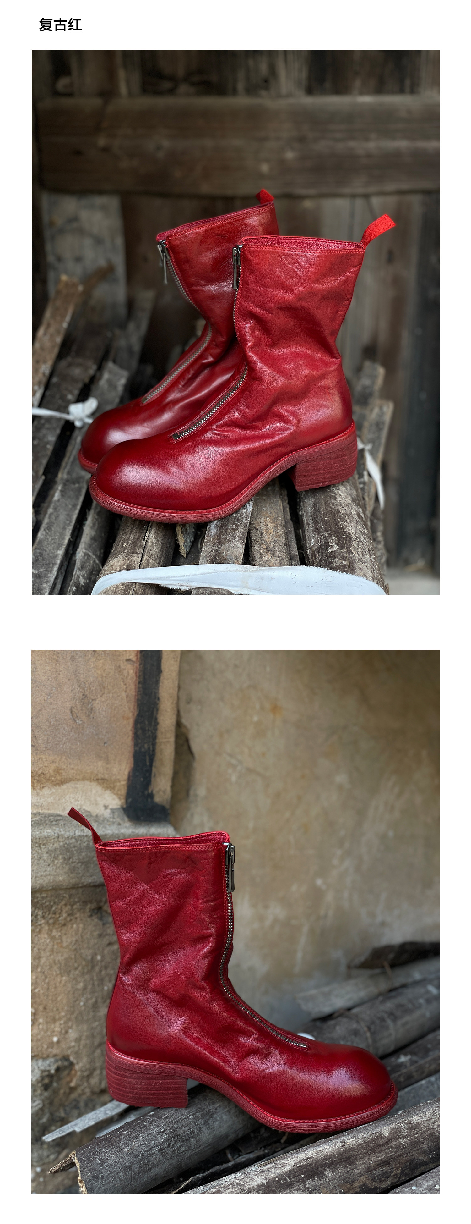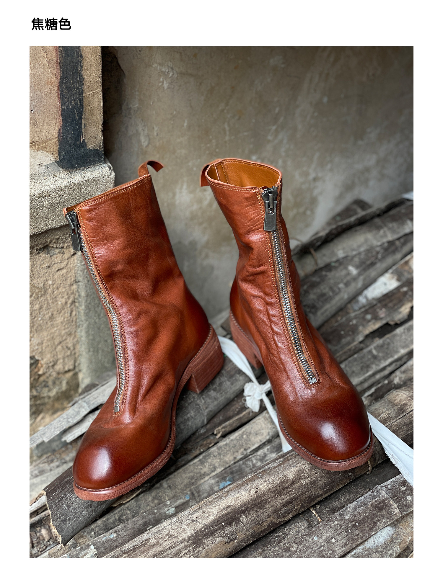 Zhu Xiaomeng Maspi Origin Guidi Boot PL2 Женский средний термин спереди -молнии Martin Boot Boots