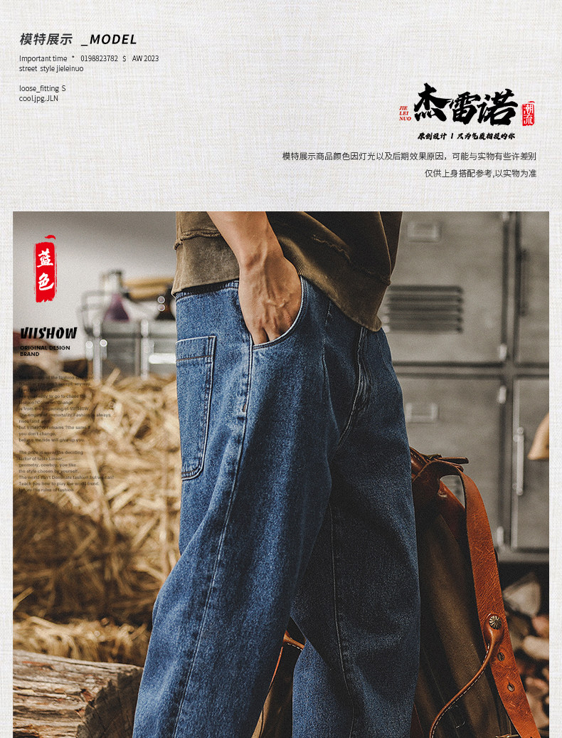 Ретро классические прямые свободные джинсы, демисезонные штаны, в американском стиле