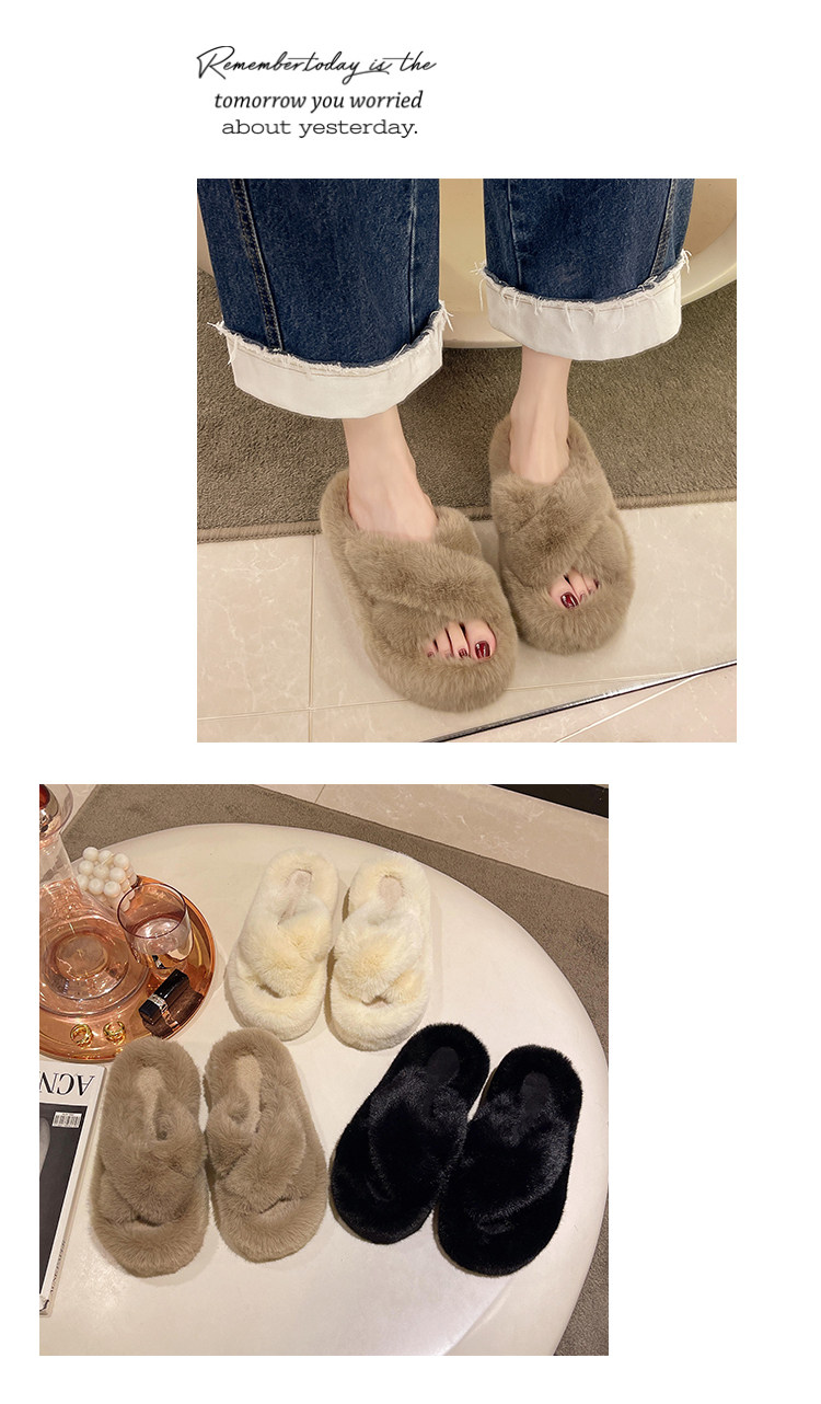 Женские тапочки с перекрестным мехом, которые можно носить на улице, новые высококачественные домашние хлопковые тапочки со знаменитостями на толстой подошве в 2025 году