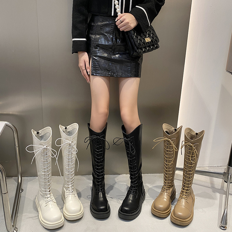 Демисезонные высокие сапоги на платформе, белые ботинки, по фигуре, подходит для подростков