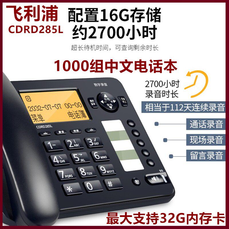 Philips Cord285L Автоматическая запись телефонная кабельная кабельная дом фиксированный стационарный китайский меню китайское меню китайское общение