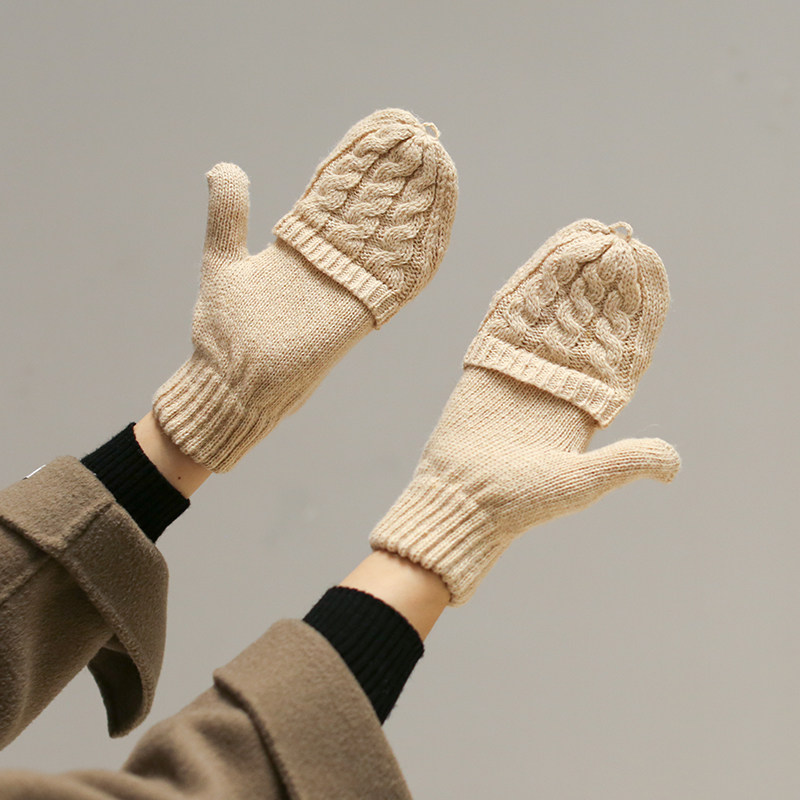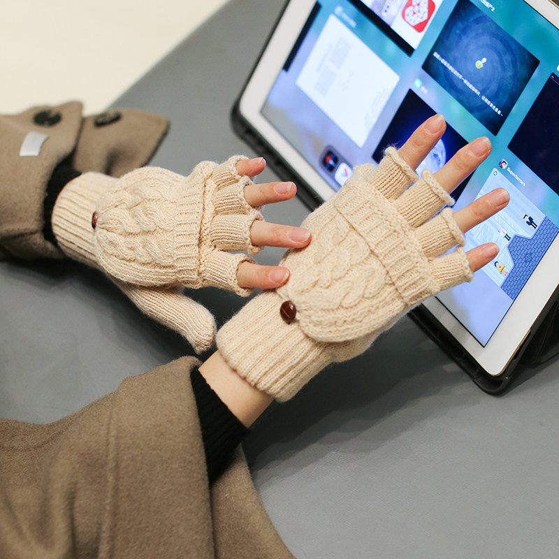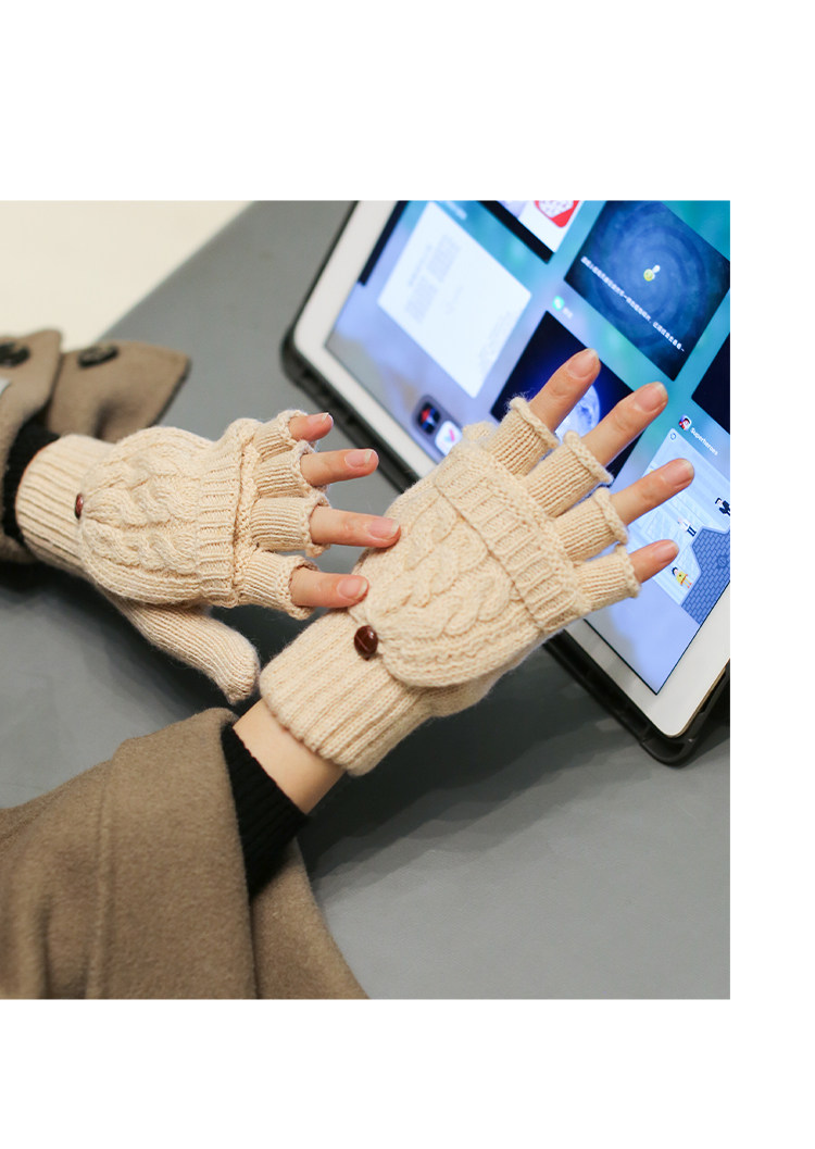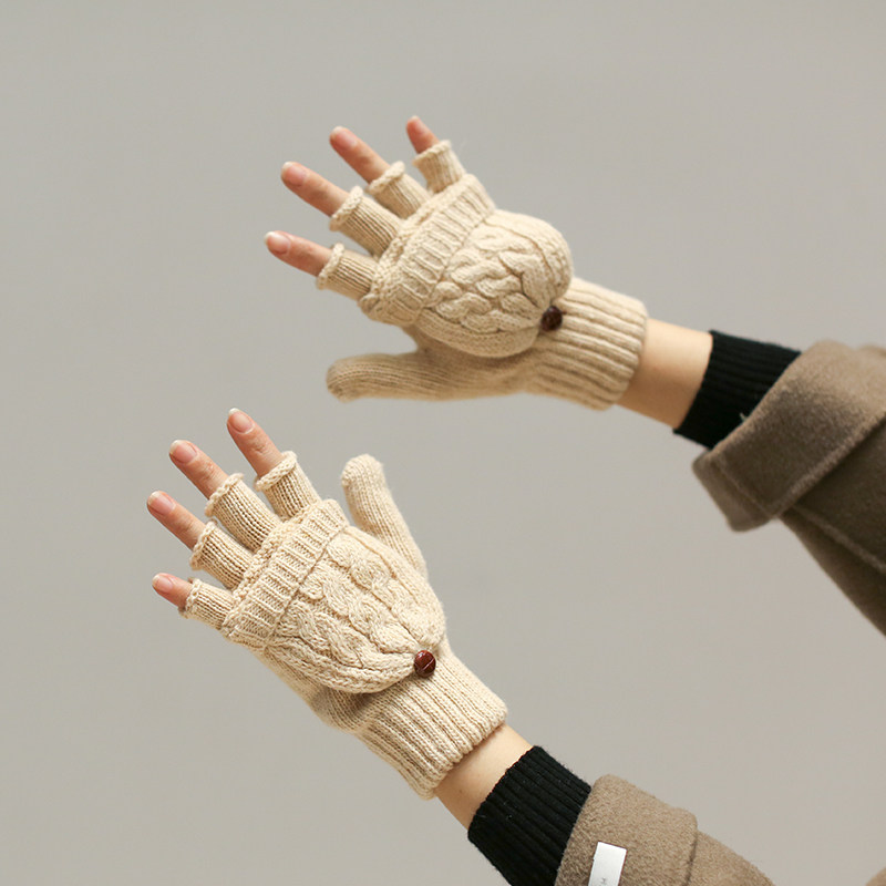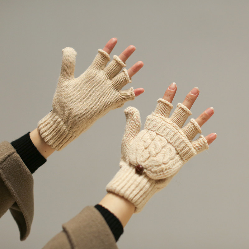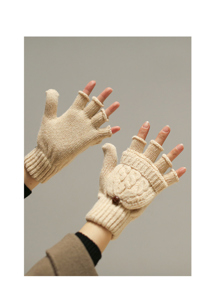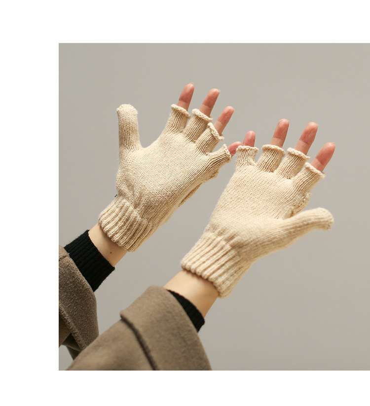 Трикотажные демисезонные удерживающие тепло ретро бежевые перчатки, без пальцев