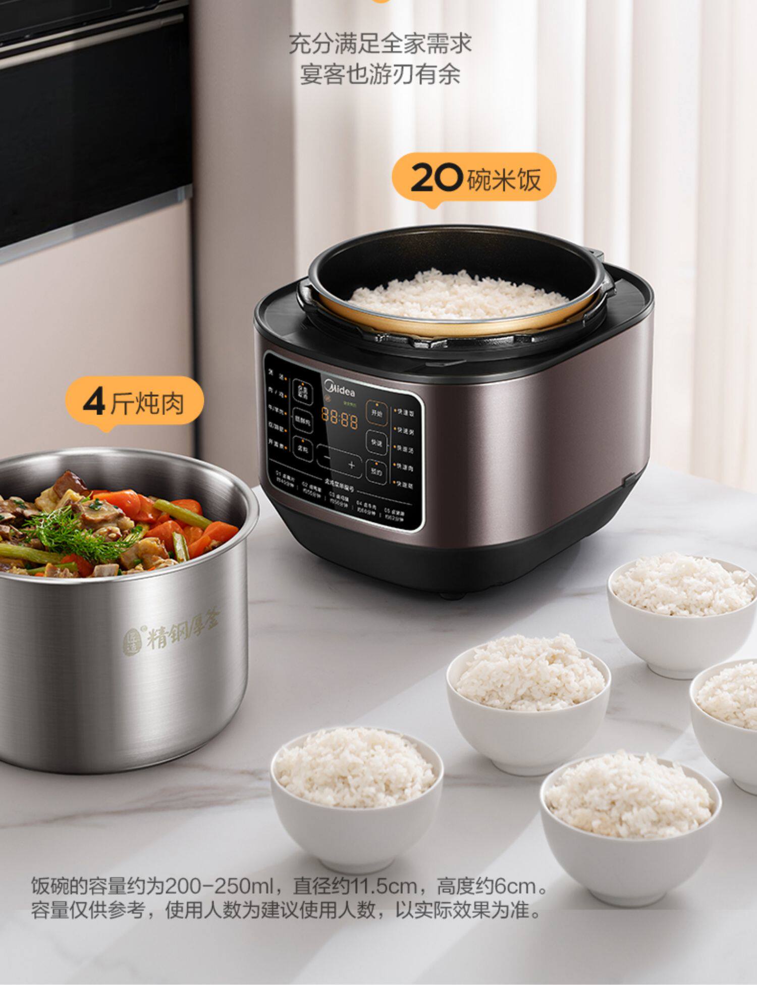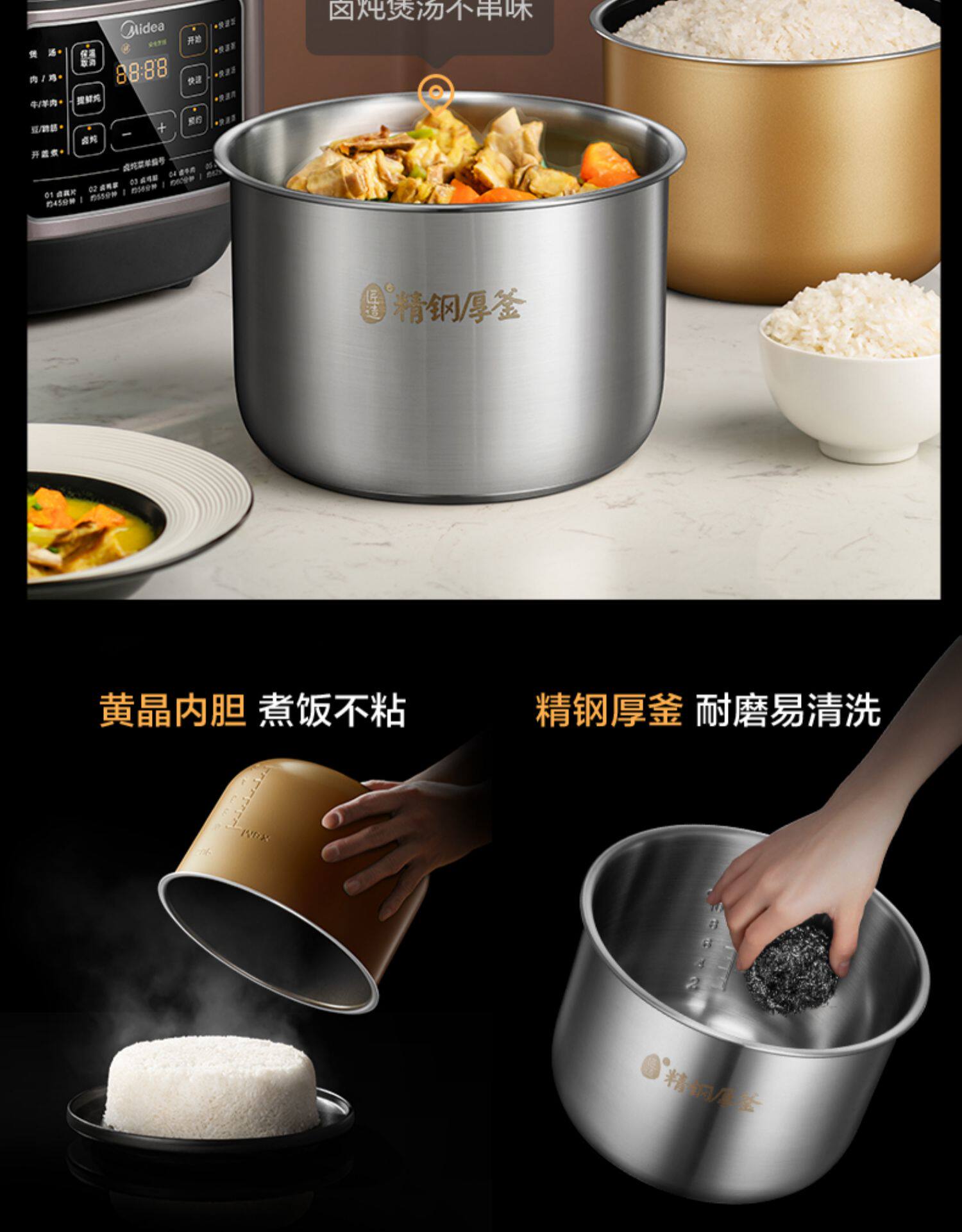 Midea Electric Pligert Домохозяйство с двойным желчным пузырем 6L рисоварки Стальная желчная пузырь интеллектуальная флагмана с большой емкостью.