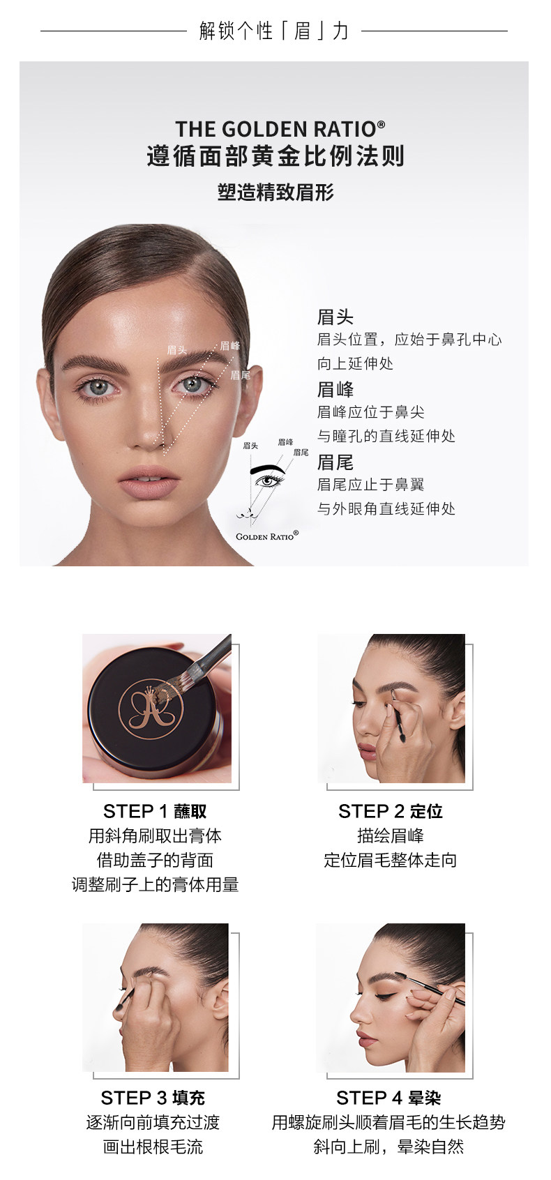 Анастасия Беверли -Хиллз/Абх Крем для бровей Гладкий Цвет Развитие, макияж, формирование, водонепроницаемые и нелегко окрасить