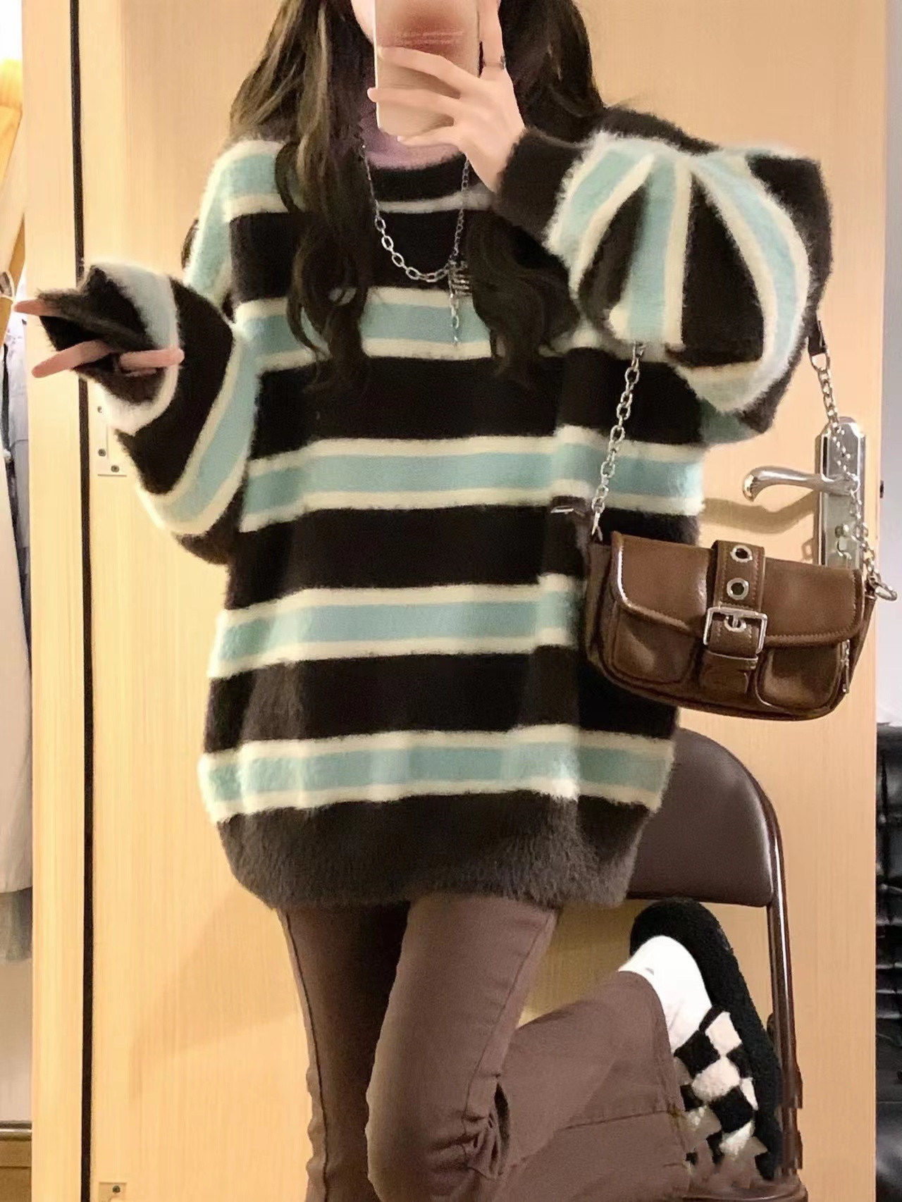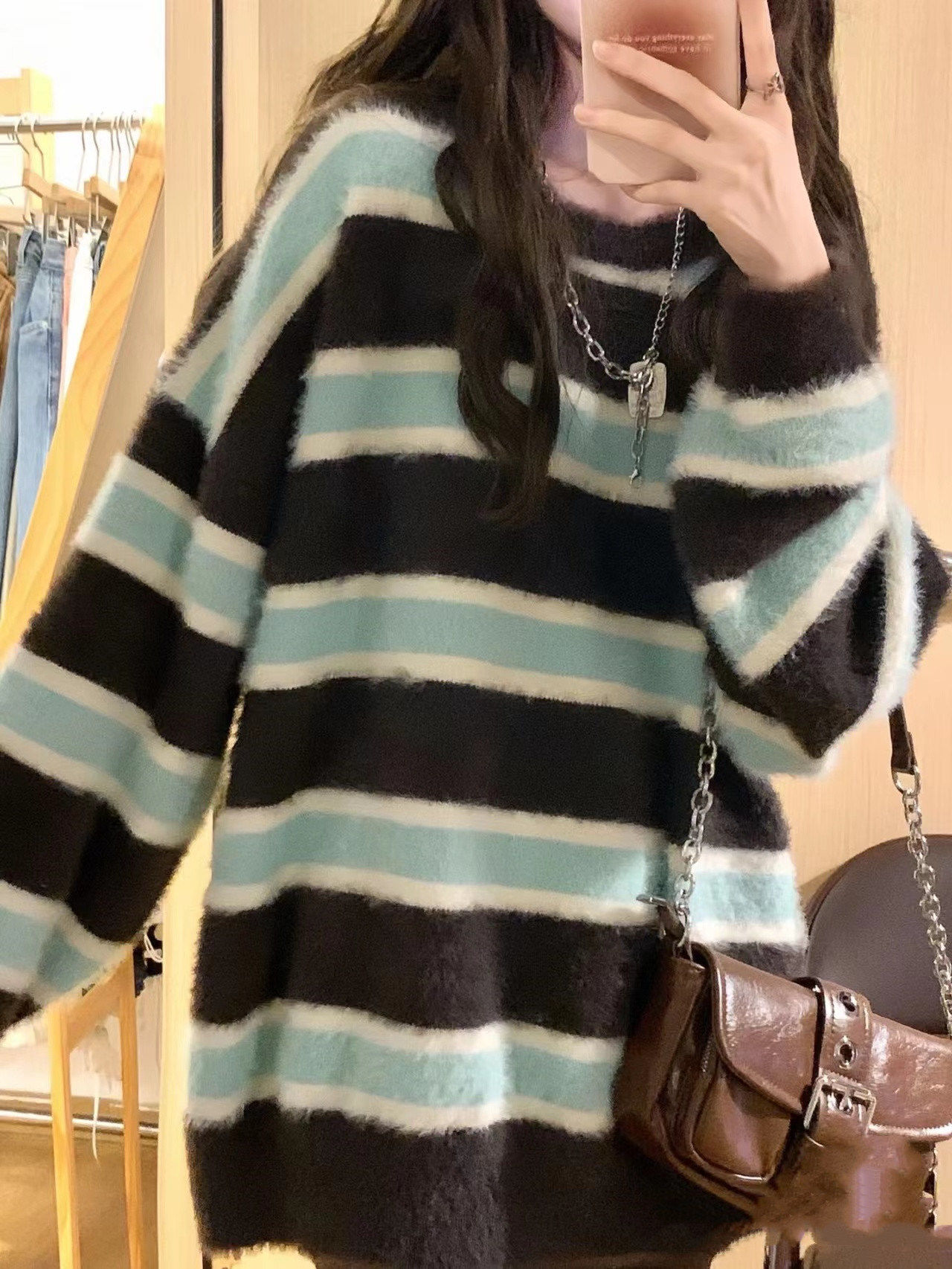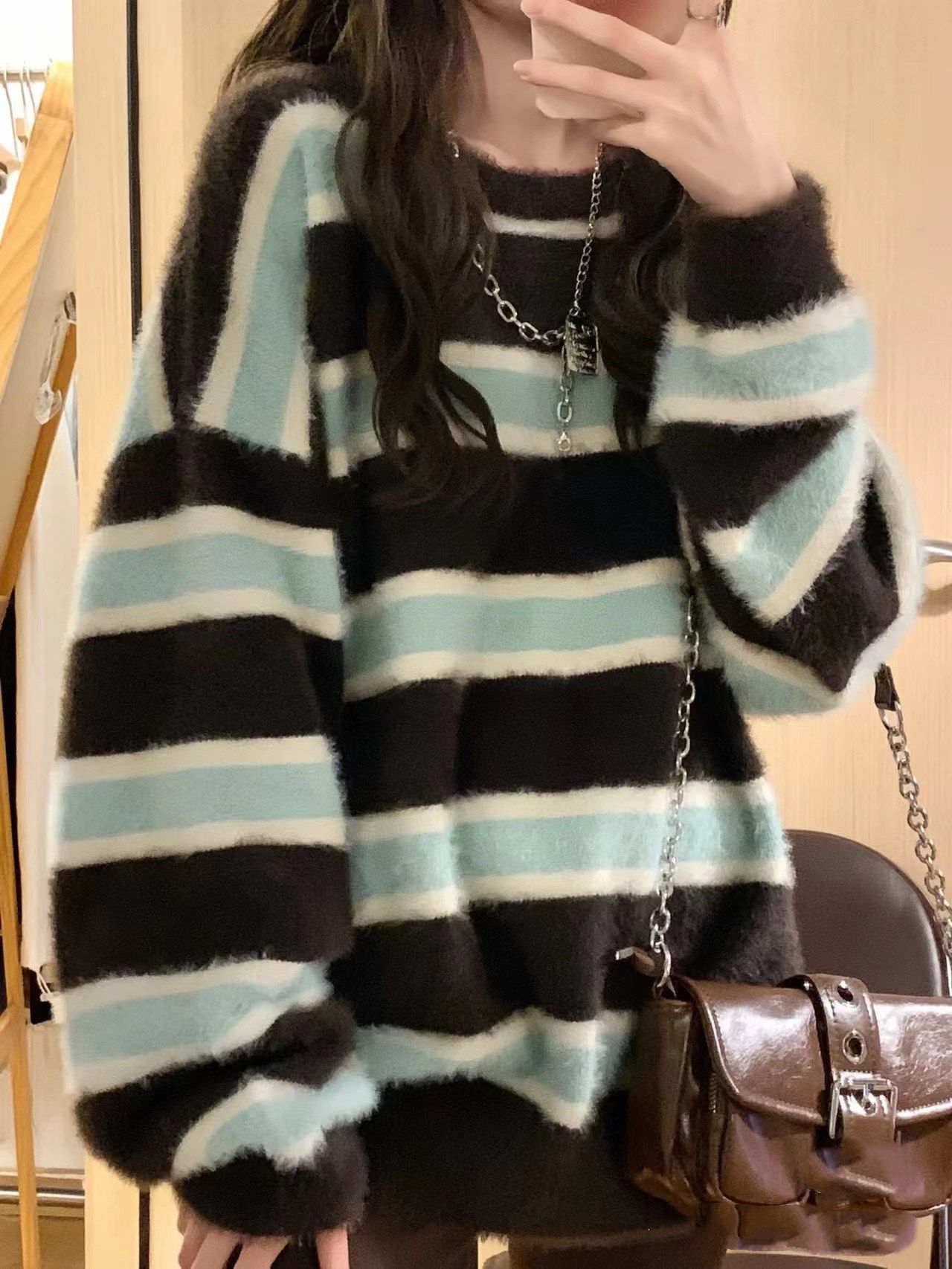 Демисезонный ретро бархатный трикотажный свитер, свободный крой