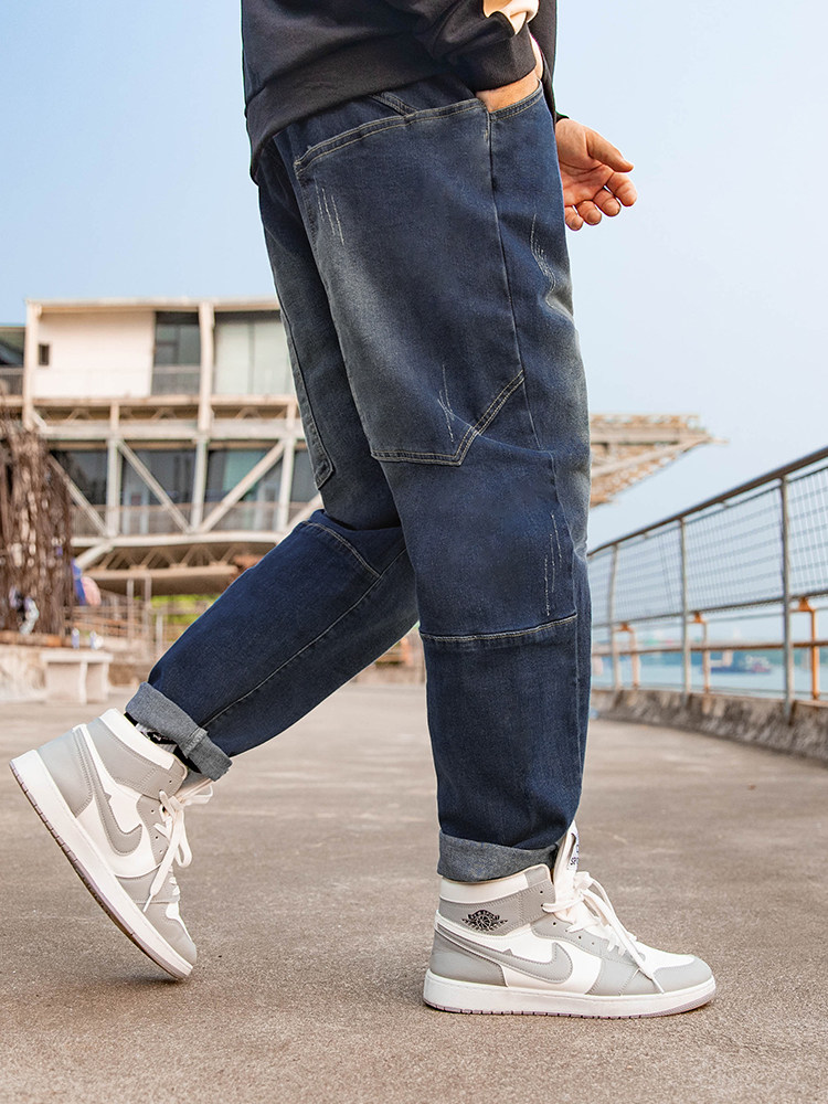 Синие модные штаны, прямые свободные джинсы, большой размер, свободный прямой крой